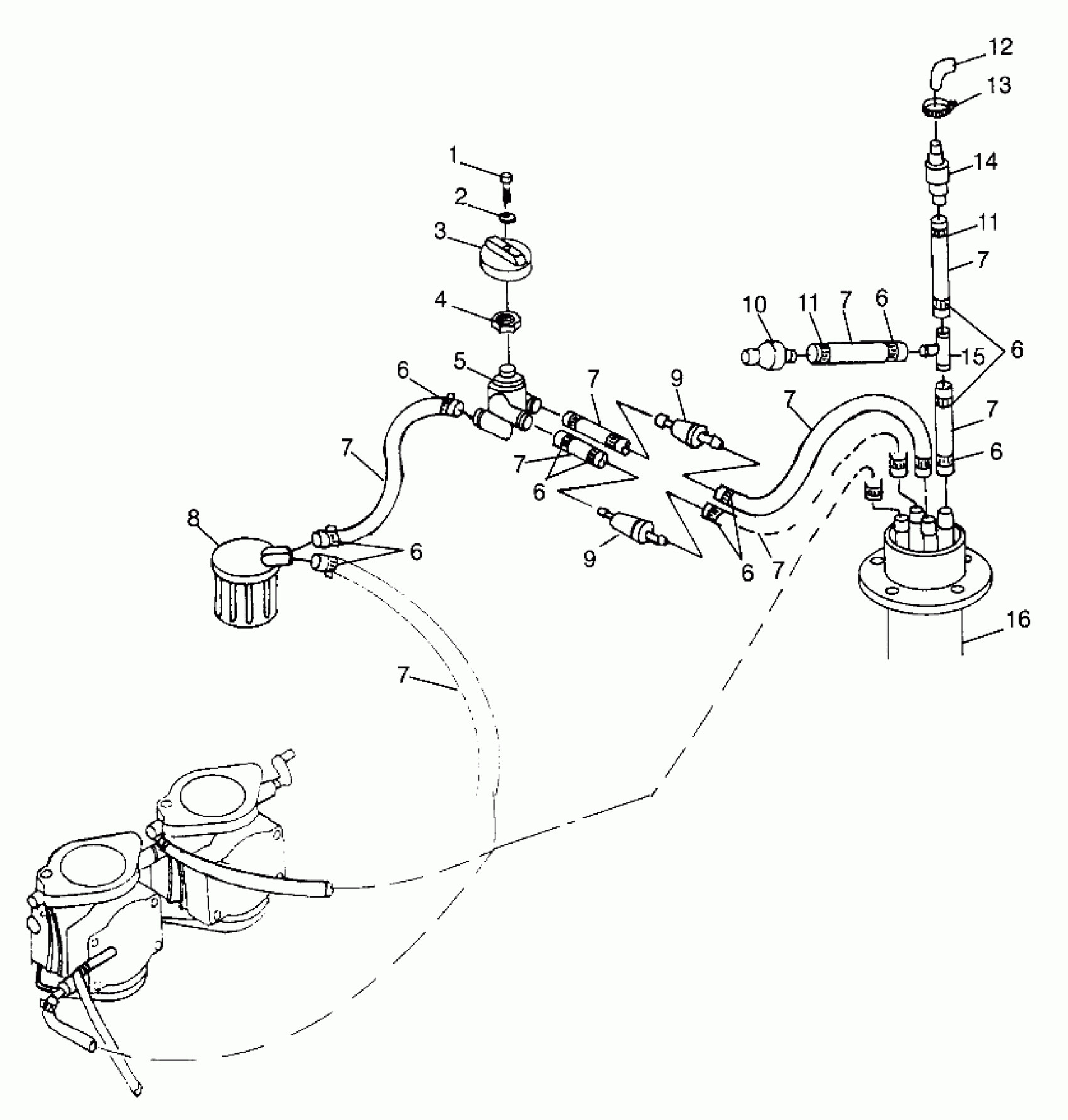 Polaris SL 700 - B974071 FUEL SYSTEM (DELUXE) SL 700 Deluxe B974072 and Intl. SL 700 Deluxe I974072 (4940874087A012) Diagram