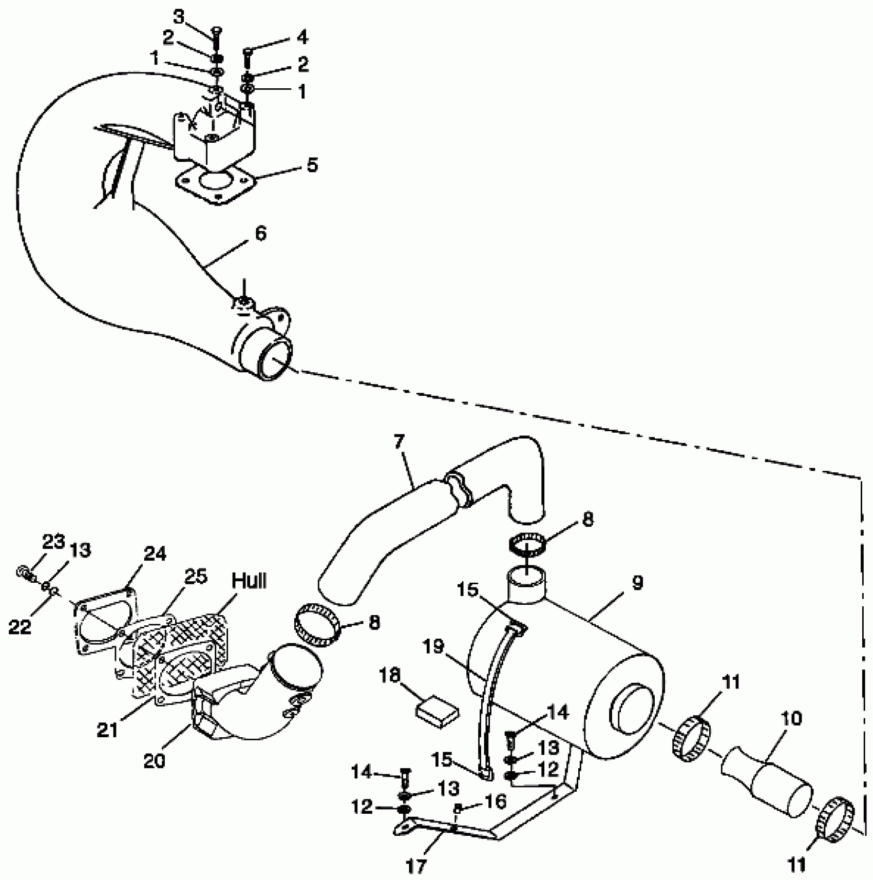 HOSE,X-OVER EXH.(T-HULL) Substituted by 5411376