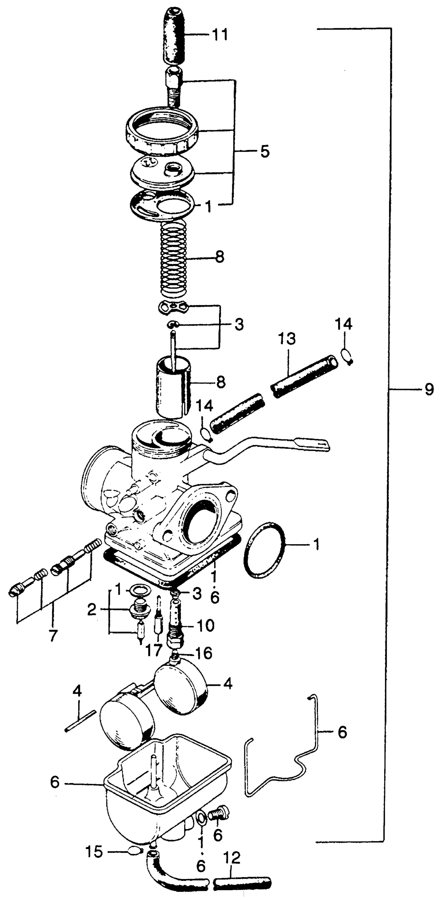Honda SL125A MOTORCYCLE, JPN, VIN# SL125S-1000001 TO SL125S-1038068 CARBURETOR Diagram