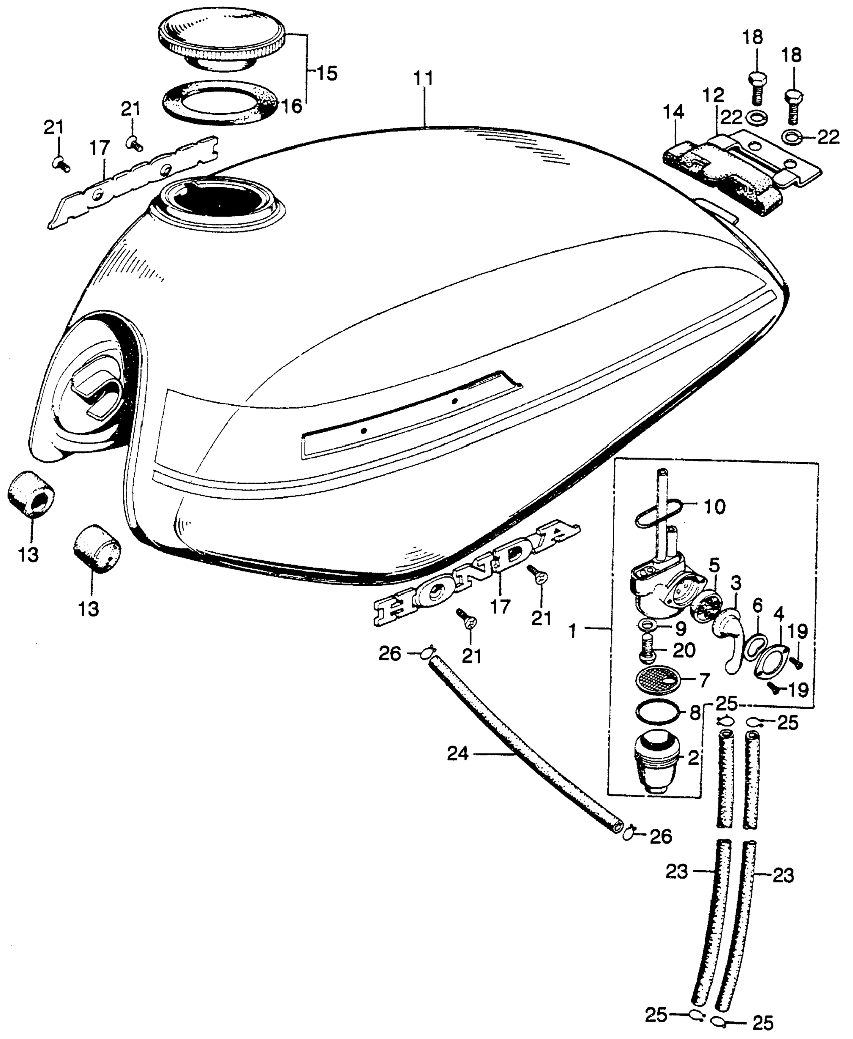 Honda SL175K1A MOTORCYCLE, JPN, VIN# SL175-2000001 FUEL TANK + FUEL VALVE Diagram