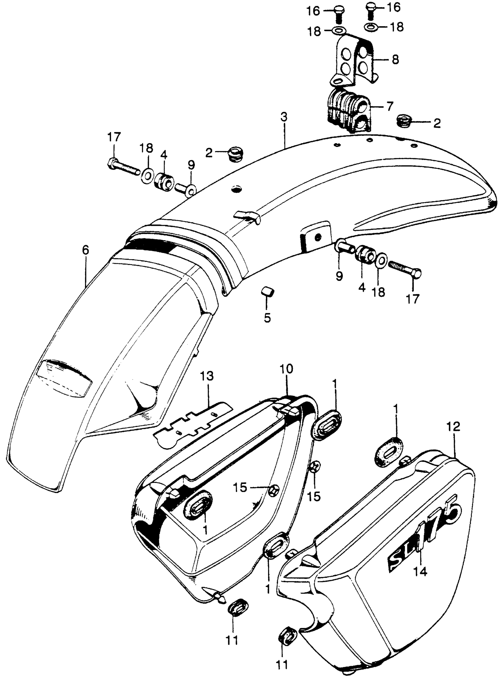 Honda SL175K1A MOTORCYCLE, JPN, VIN# SL175-2000001 REAR FENDER + AIR CLEANER COVER K1 Diagram