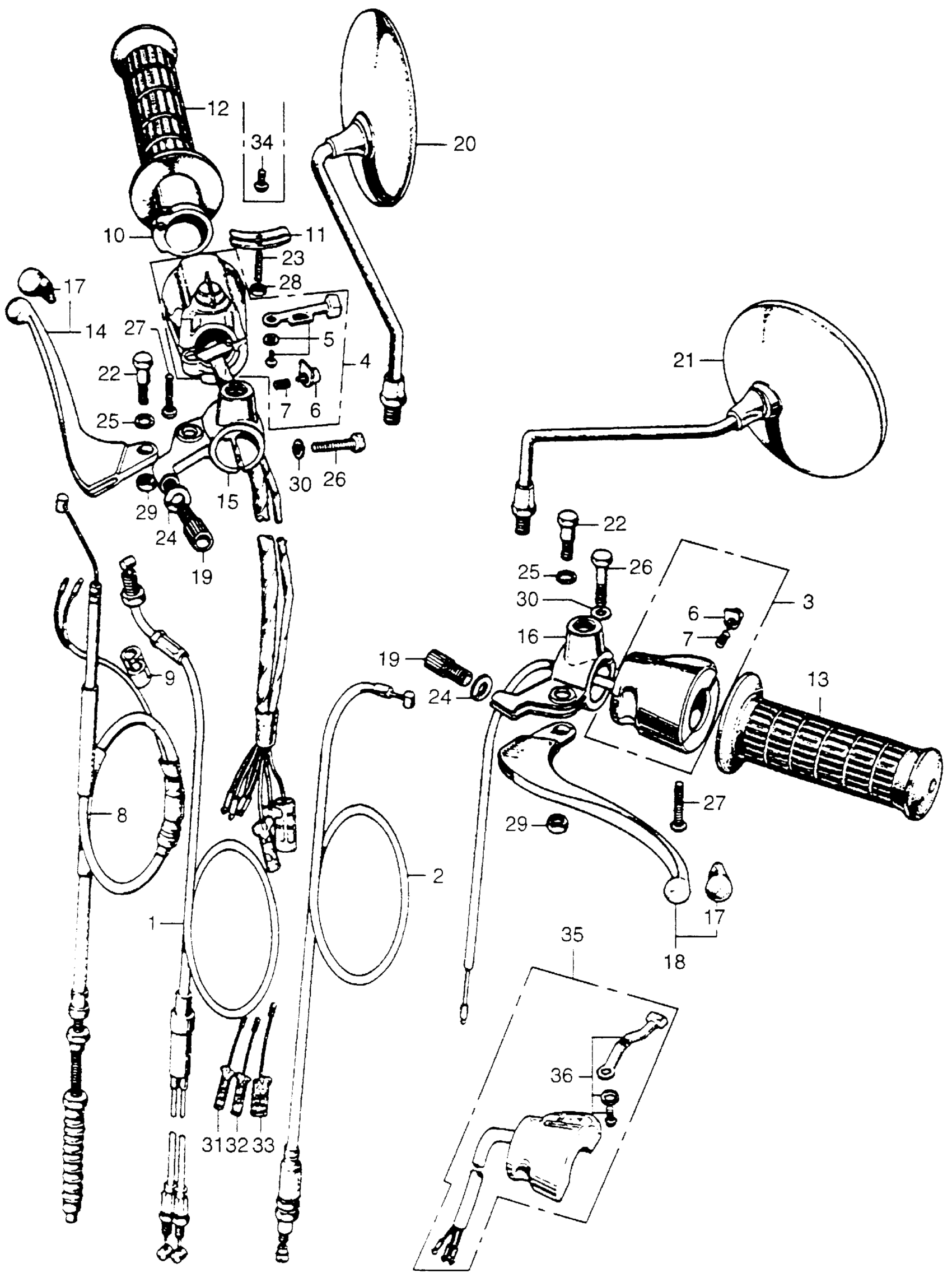 Honda SL350A MOTORCYCLE, JPN, VIN# SL350-1000001 CABLE + HORN & LIGHTING SWITCH Diagram