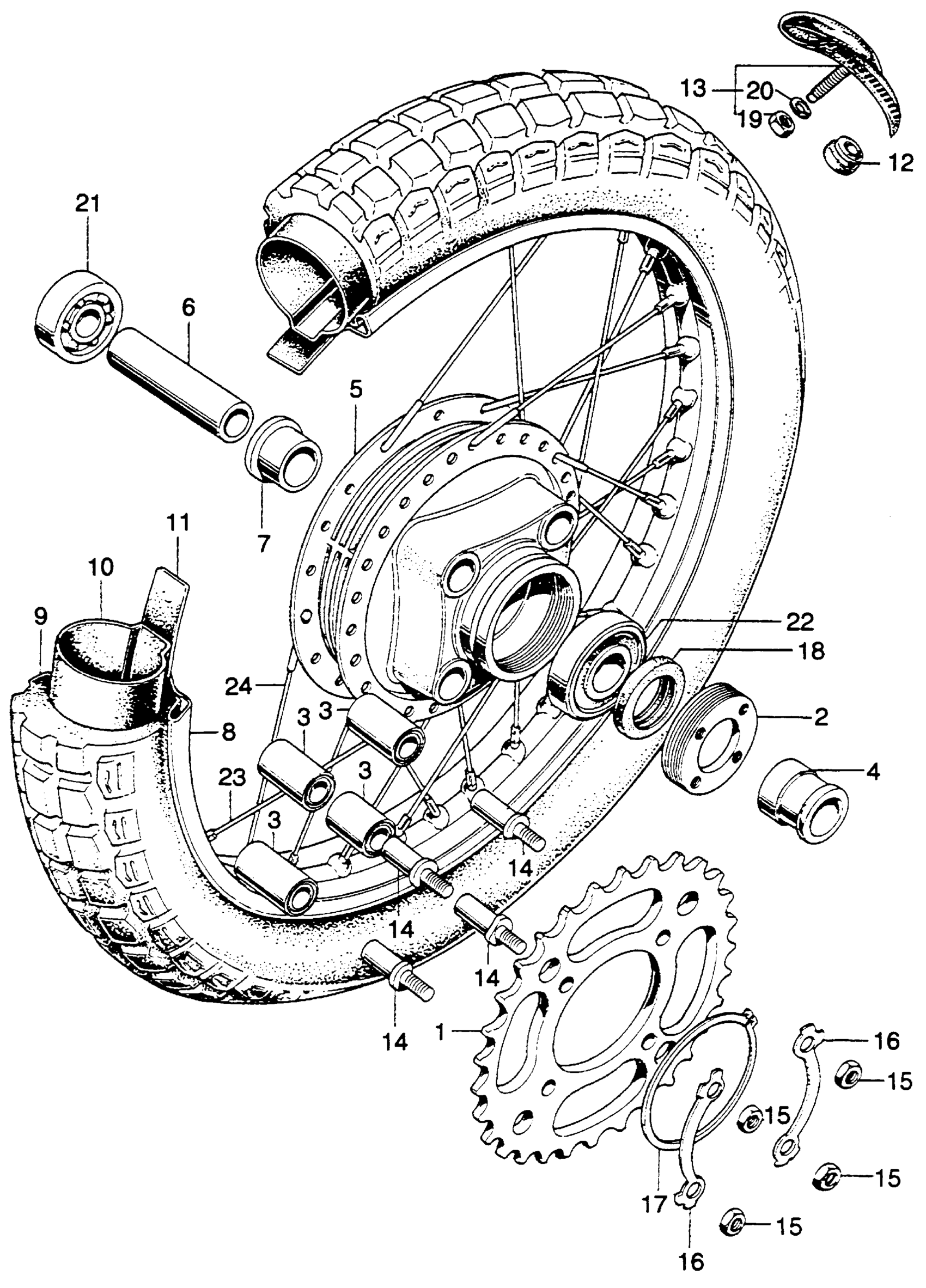 Honda SL350K2A MOTORCYCLE, JPN, VIN# SL350-3000001 REAR WHEEL Diagram
