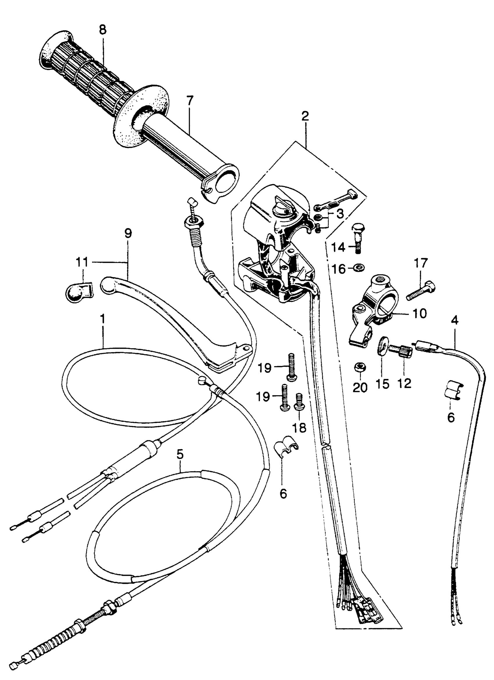 Honda SL350K2A MOTORCYCLE, JPN, VIN# SL350-3000001 RIGHT HANDLE SWITCH + CABLE I Diagram