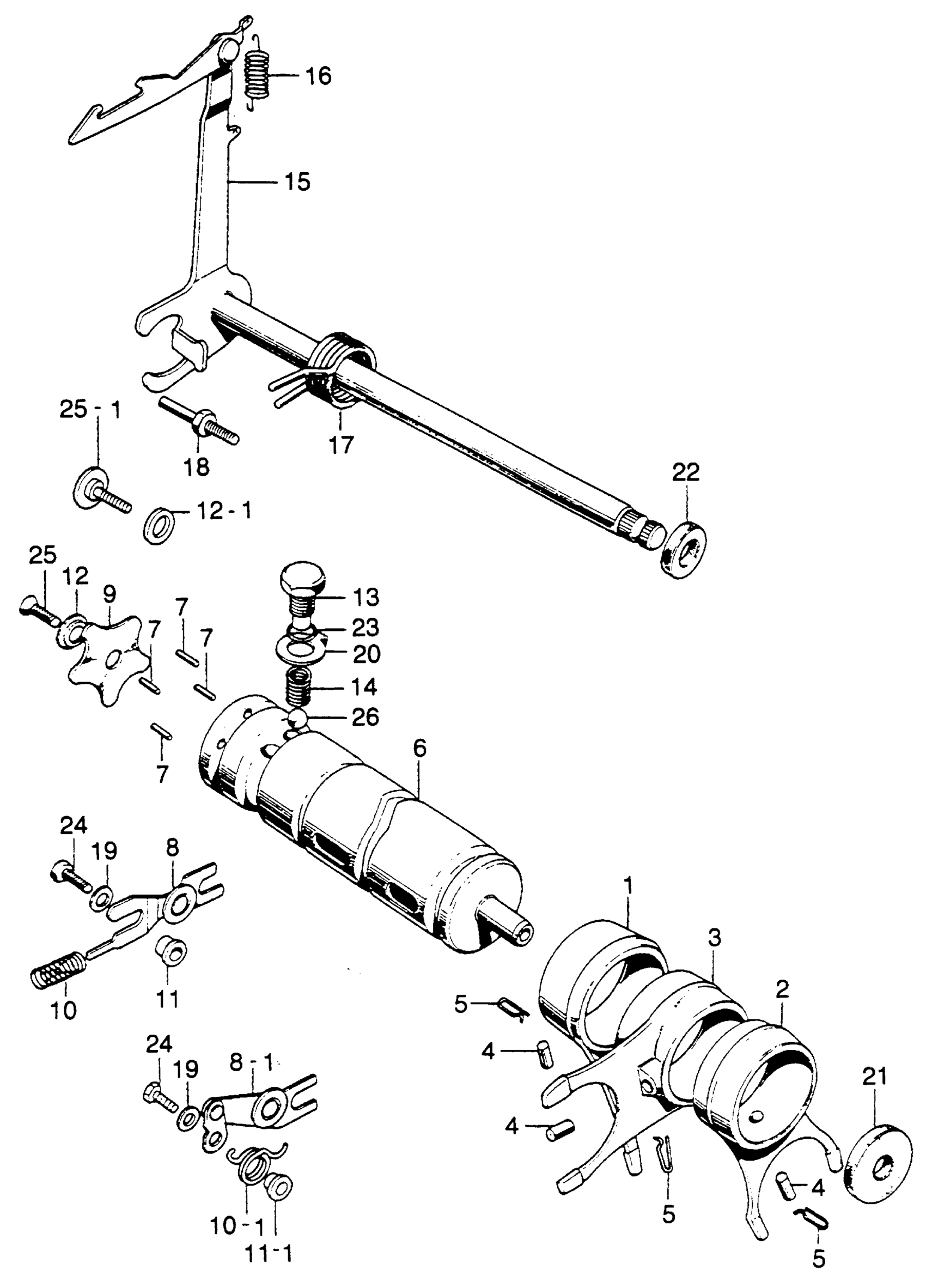 Honda SL350K2A MOTORCYCLE, JPN, VIN# SL350-3000001 SHIFT DRUM + SHIFT ARM Diagram