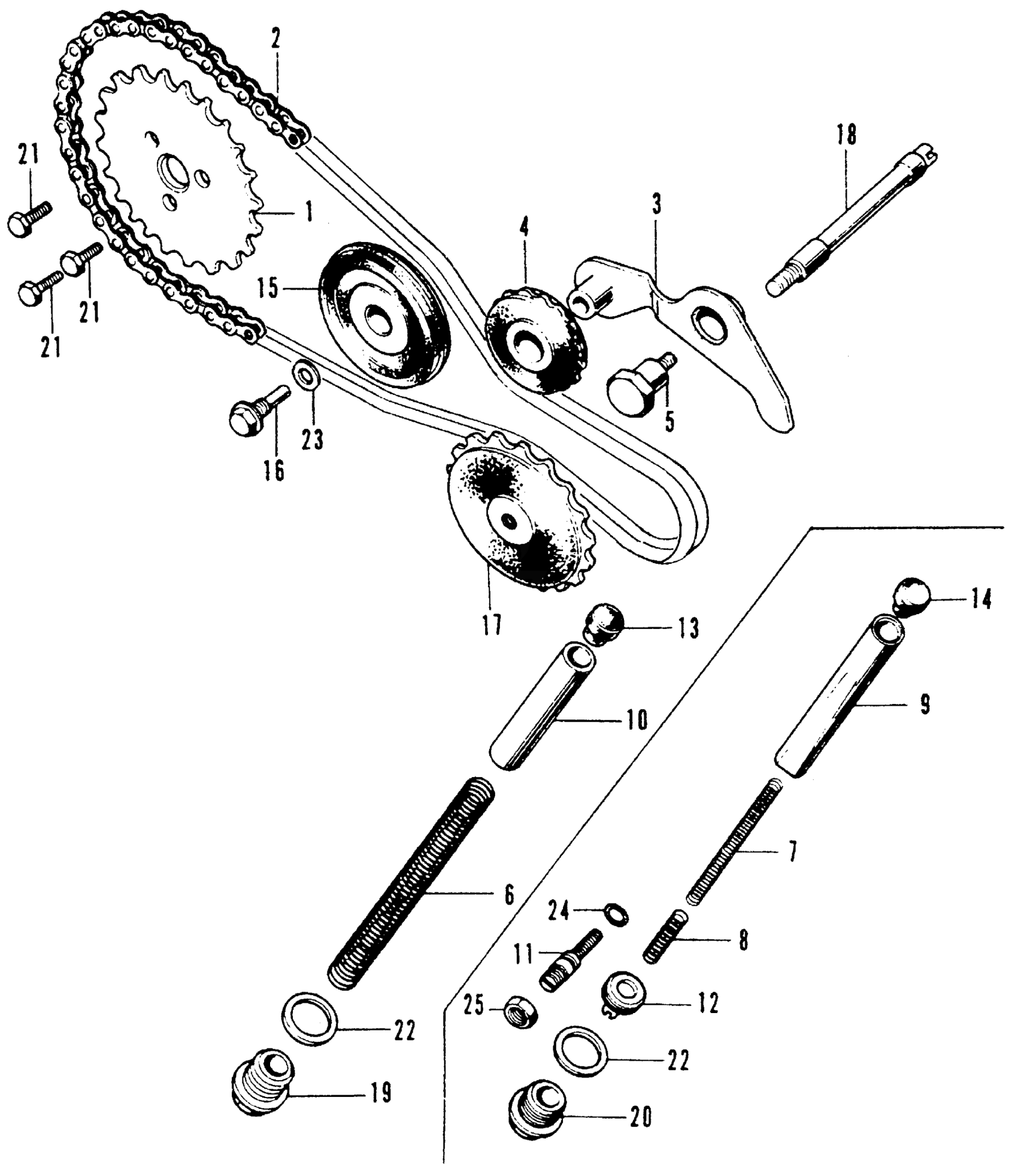 Honda SL70A MOTORCYCLE, JPN, VIN# SL70-1000001 CAM CHAIN TENSIONER Diagram