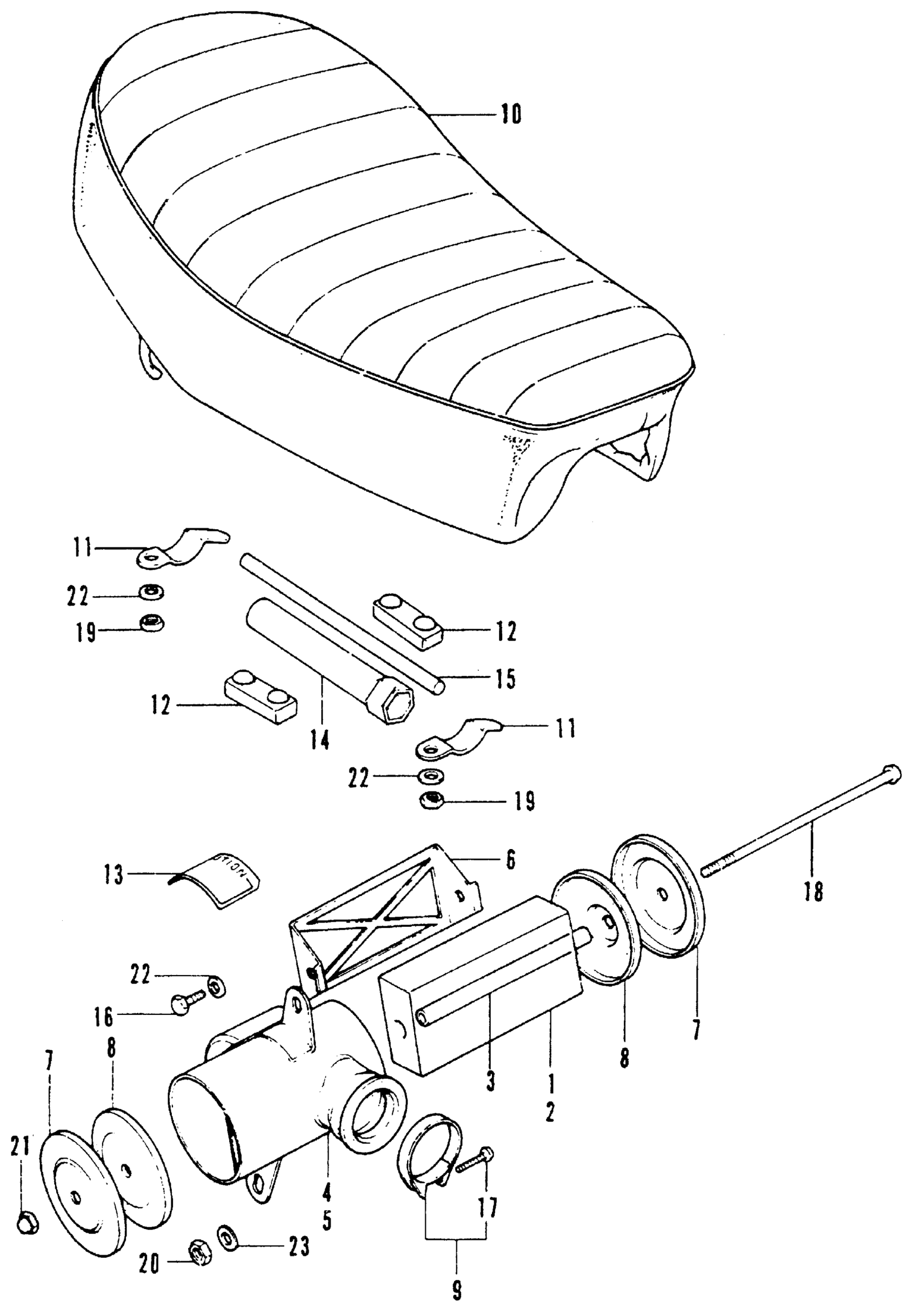 Honda SL70A MOTORCYCLE, JPN, VIN# SL70-1000001 SEAT + AIR CLEANER Diagram