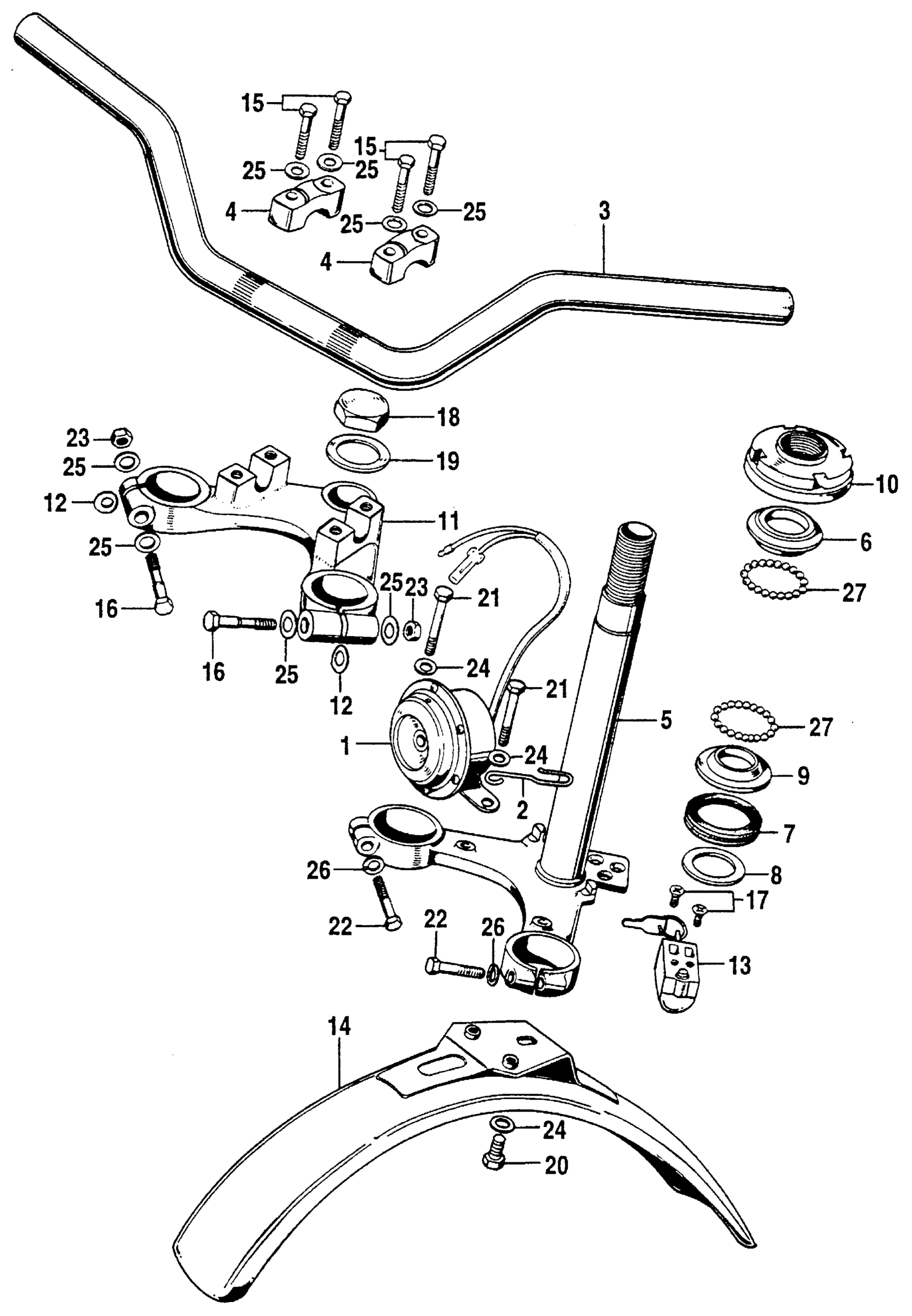 HANDLE + STEERING STEM + FRONT FENDER