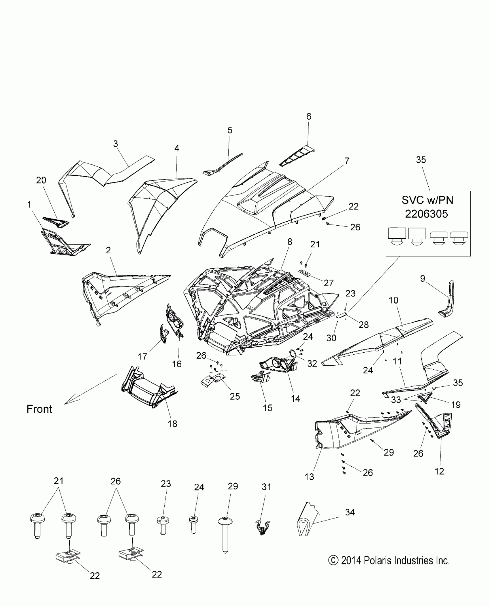 Polaris SLINGSHOT ALL OPTIONS - T15AAS/AAP BODY, HOOD and FENDER ASM. - T15AAS/AAP ALL OPTIONS (49SLINGSHOTHOOD14SLING) Diagram