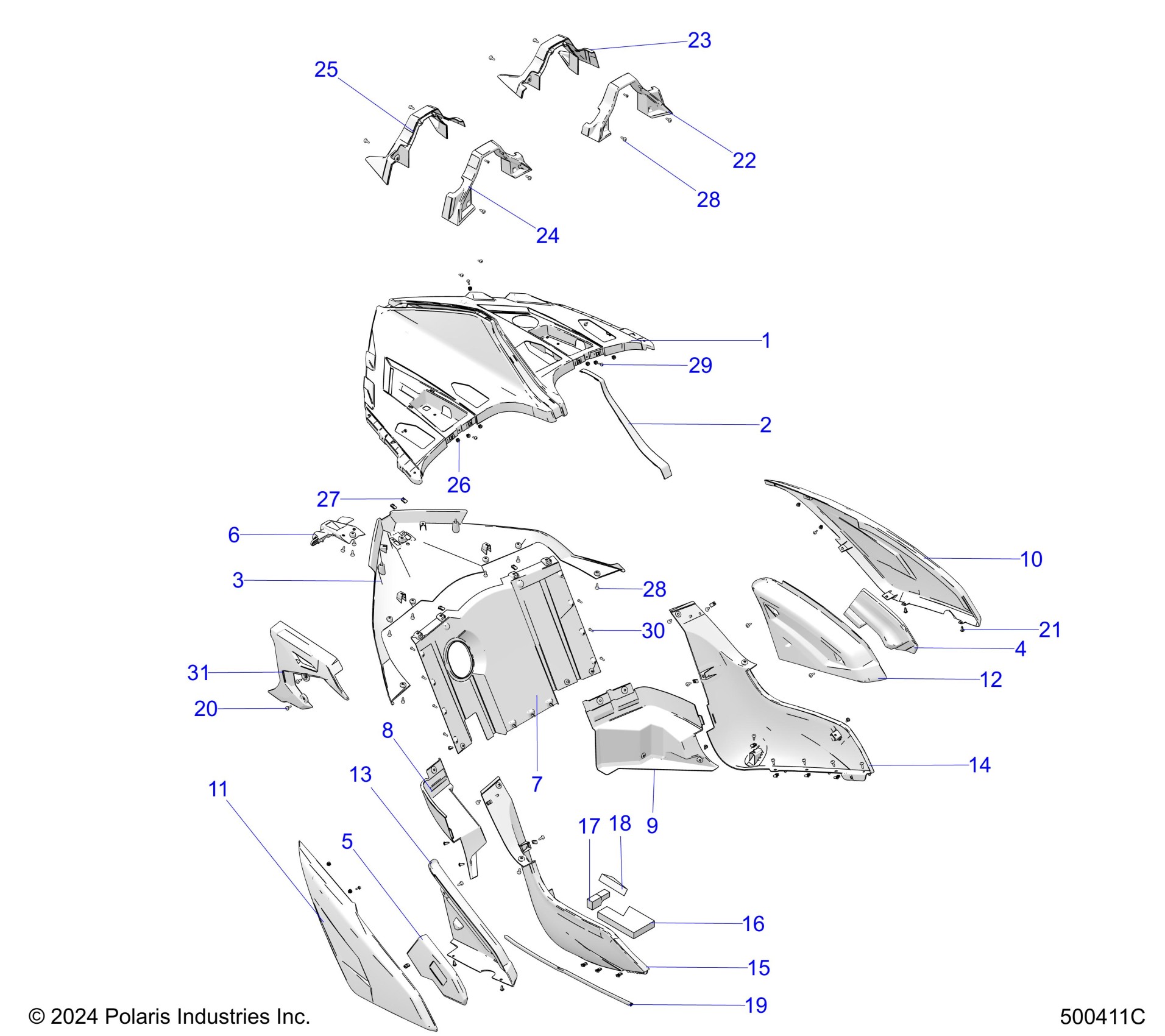 Polaris SLINGSHOT R GRAND TOURING (R01) - T25AAGGB/HB BODY, REAR - T25AAGGB/HB (500411C) Diagram
