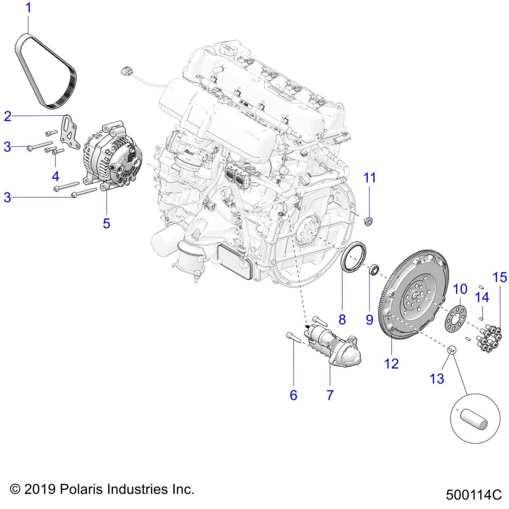 ENGINE, ALTERNATOR, FLYWHEEL, and STARTER - T21AARGB/SGD ALL OPTIONS (500114C)