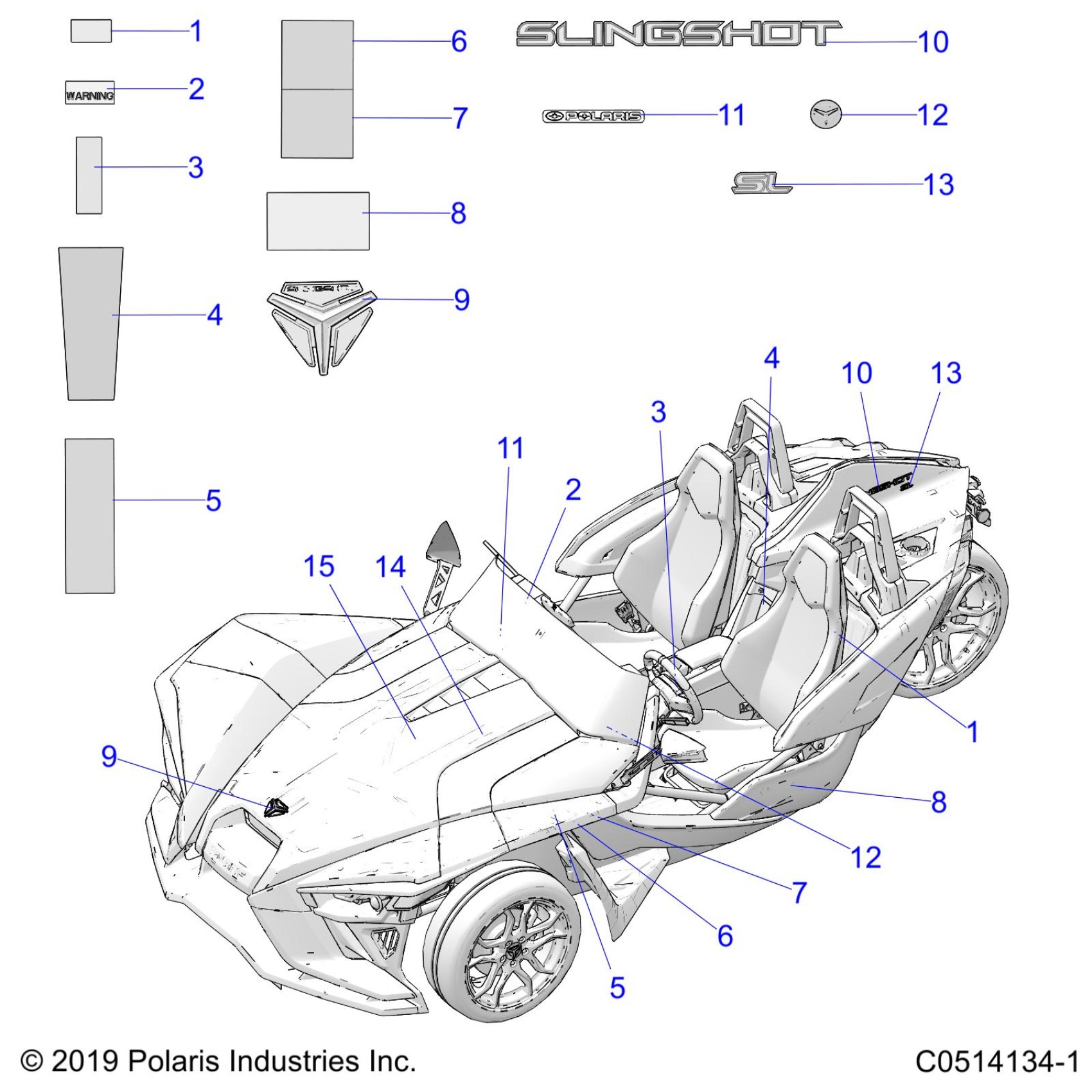 Polaris SLINGSHOT R/SL AUTODRIVE (R05) - T20AAPHD/RHB BODY, DECALS AND BADGES (SL MODELS) - T20AAPHD ALL OPTIONS (C0514134-1) Diagram