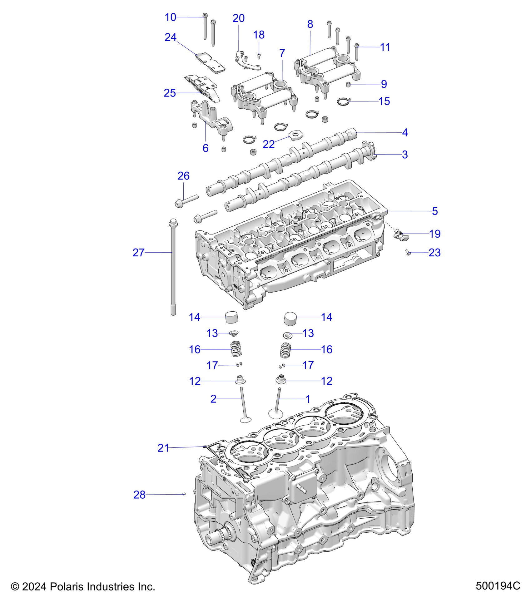 Polaris SLINGSHOT ROUSH EDITION ALL OPTIONS (R01) - T23AALHB/AALGB ENGINE, HEAD ASM and VALVES - T23AALHB/AALGB (500194C) Diagram