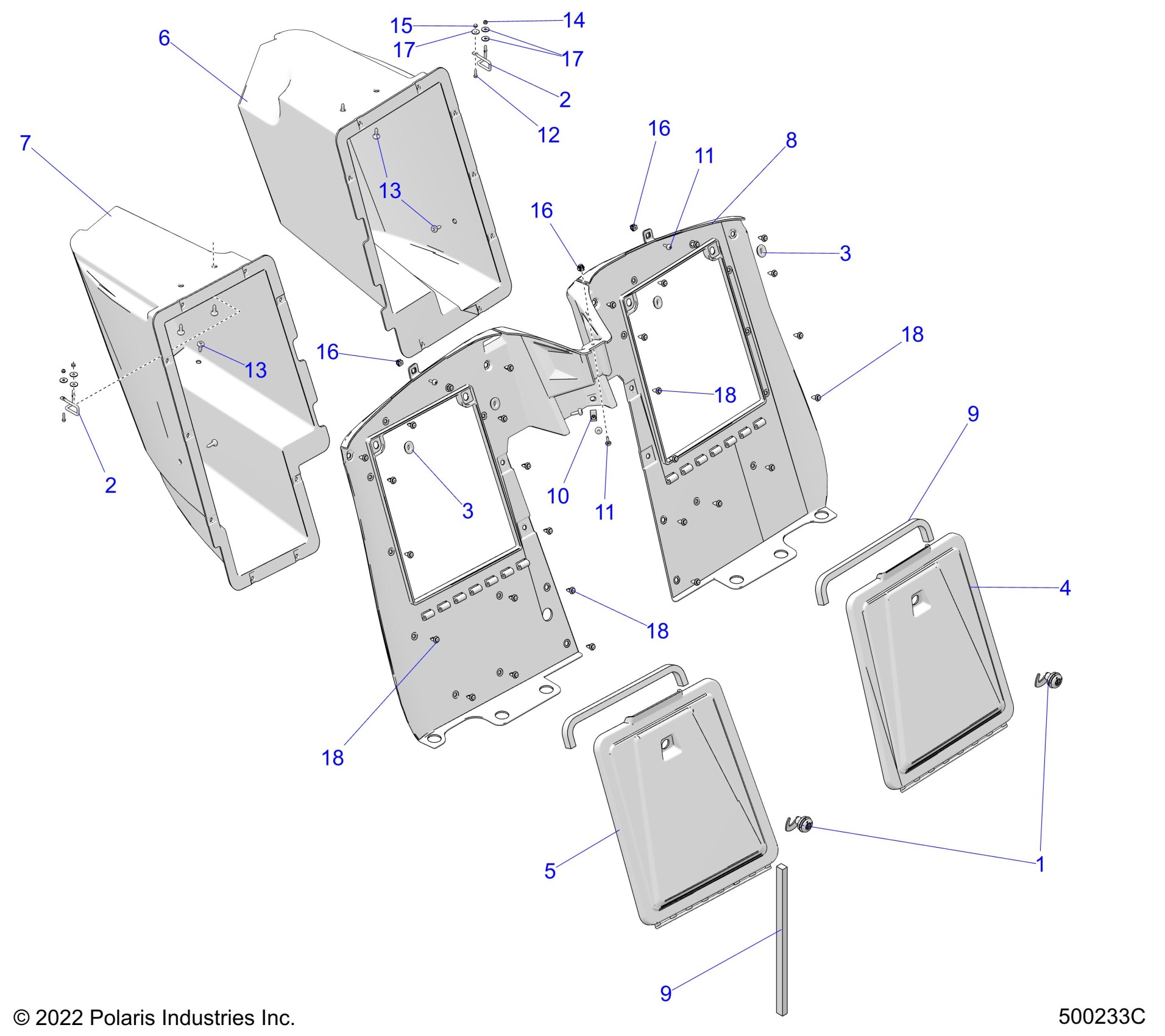 Polaris SLINGSHOT ROUSH EDITION (R01) - T24AALHB/GB BODY, REAR STORAGE COMPARTMENTS - T234ALHB/GB (500233C) Diagram