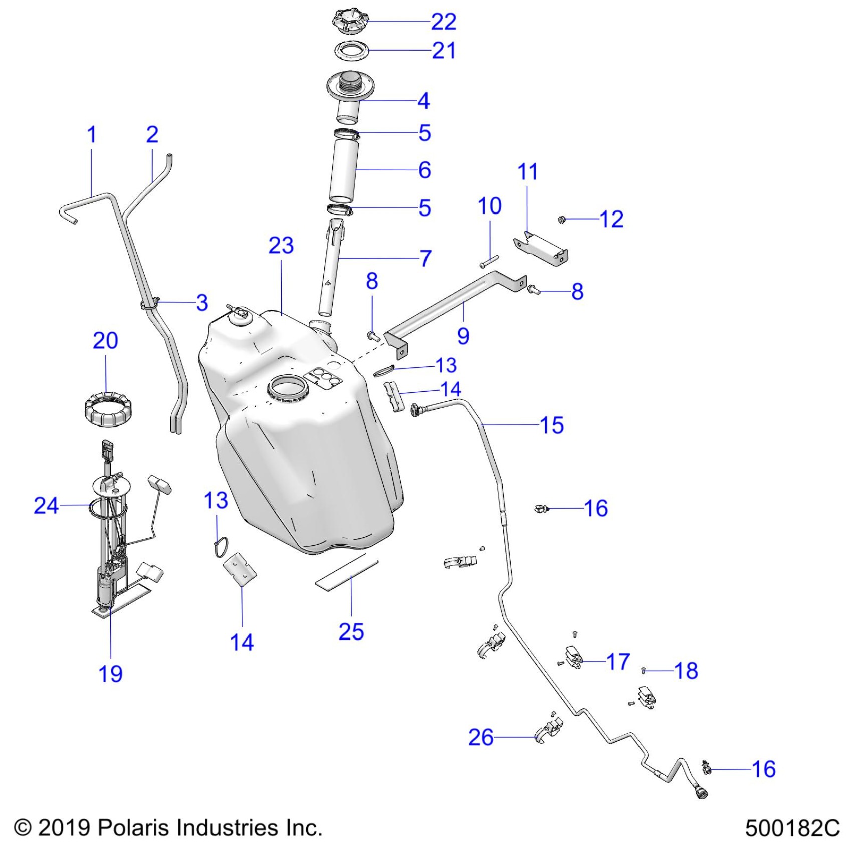 Polaris SLINGSHOT SL/SLR/R ALL OPTIONS (R01) - T23AAFGB/AAFHB/AAPGD/AAPHD/AARGB/AARHB FUEL SYSTEM, FUEL TANK ASM. - T23AAFGB/HB/PGD/HD/RGB/HB ALL OPTIONS (500182C) Diagram