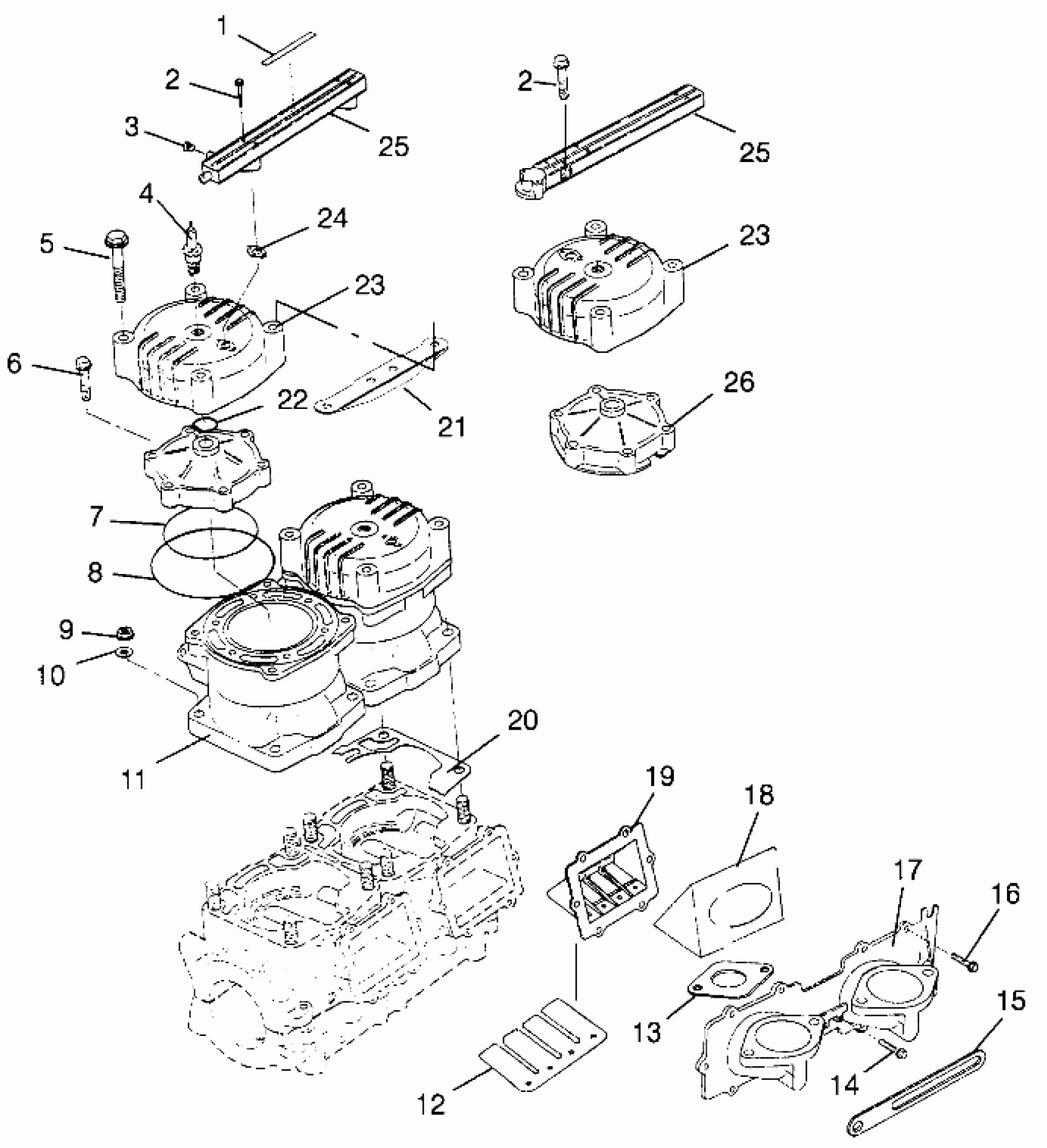 Polaris SLT 700 - B964166 CYLINDER & MANIFOLD SLT 700 B964166 and Intl. SLT 700 I964166 (4933923392B014) Diagram