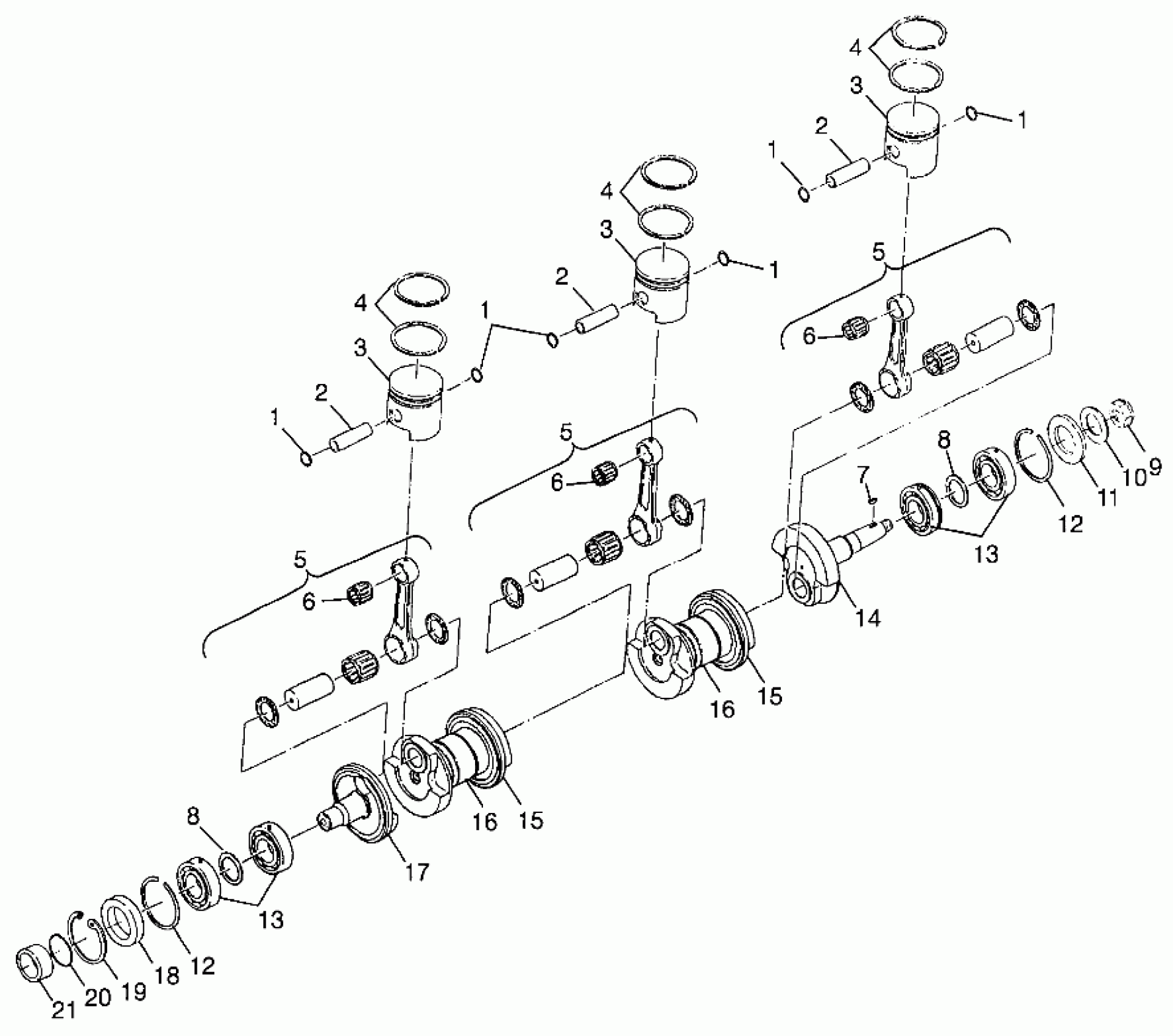 CRANKSHAFT, 3 CYL Substituted by 2201238 (Incl. 5, 14-17)