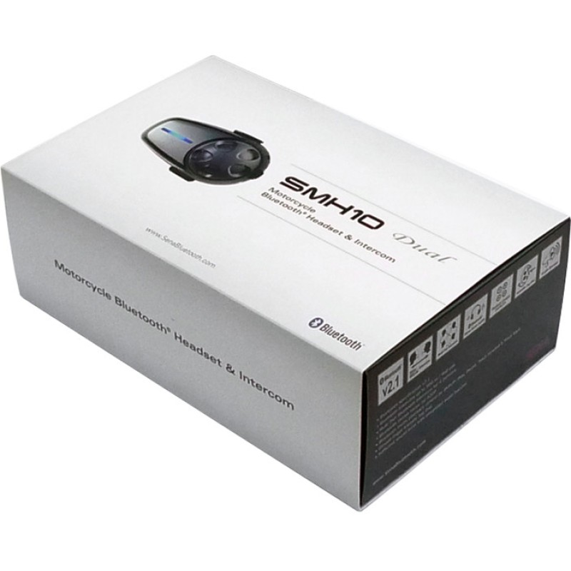 The SMH10 is a Bluetooth 3.0 stereo headset with long-range Bluetooth intercom designed specifically for motorcycles. With the SMH10, you can call handsfree on your Bluetooth mobile phone, listen to stereo music or voice instructions of GPS navigations by Bluetooth wirelessly and have intercom conversations in full duplex with a passenger or other motorcycle riders. The SMH10 offers exceptional sound quality for both incoming and outgoing sound in its class. Also, the easy-to-access and intuitive button operations make the SMH10 a perfect companion for motorcycles.