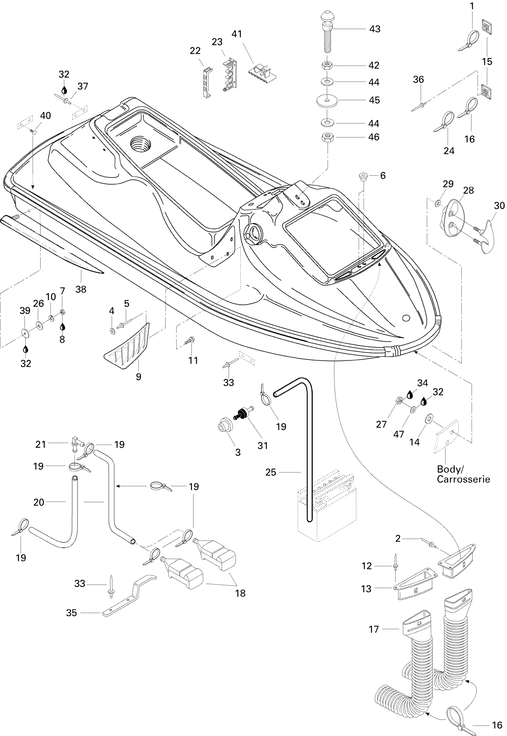 Sea-doo SP, 5876, 1996 09- Body, Front View SP Diagram
