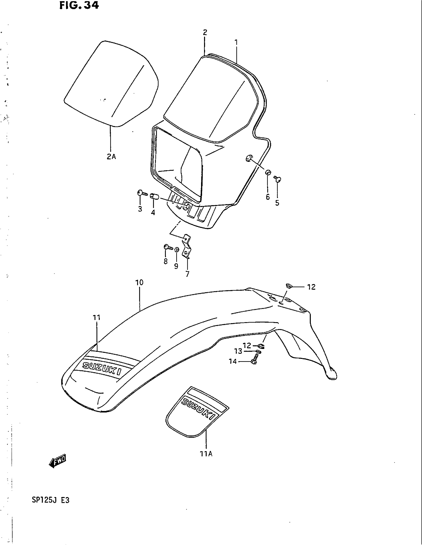 Suzuki SP125 (1988) HEADLAMP COVER - FRONT FENDER (MODEL H/J) Diagram