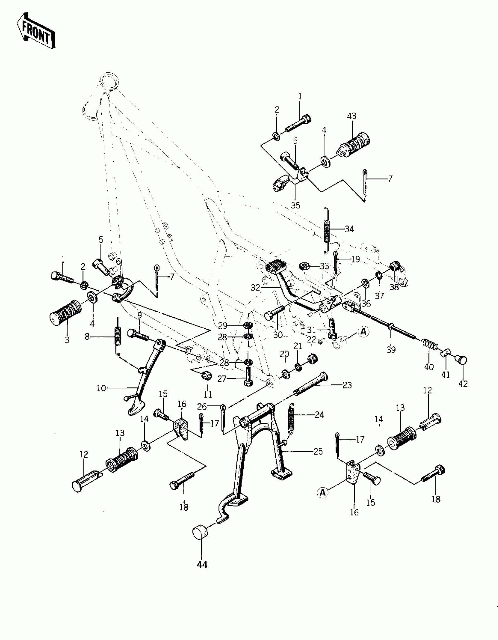 Kawasaki Special FOOTRESTS/STANDS/BRAKE PEDAL ('75 S) Diagram