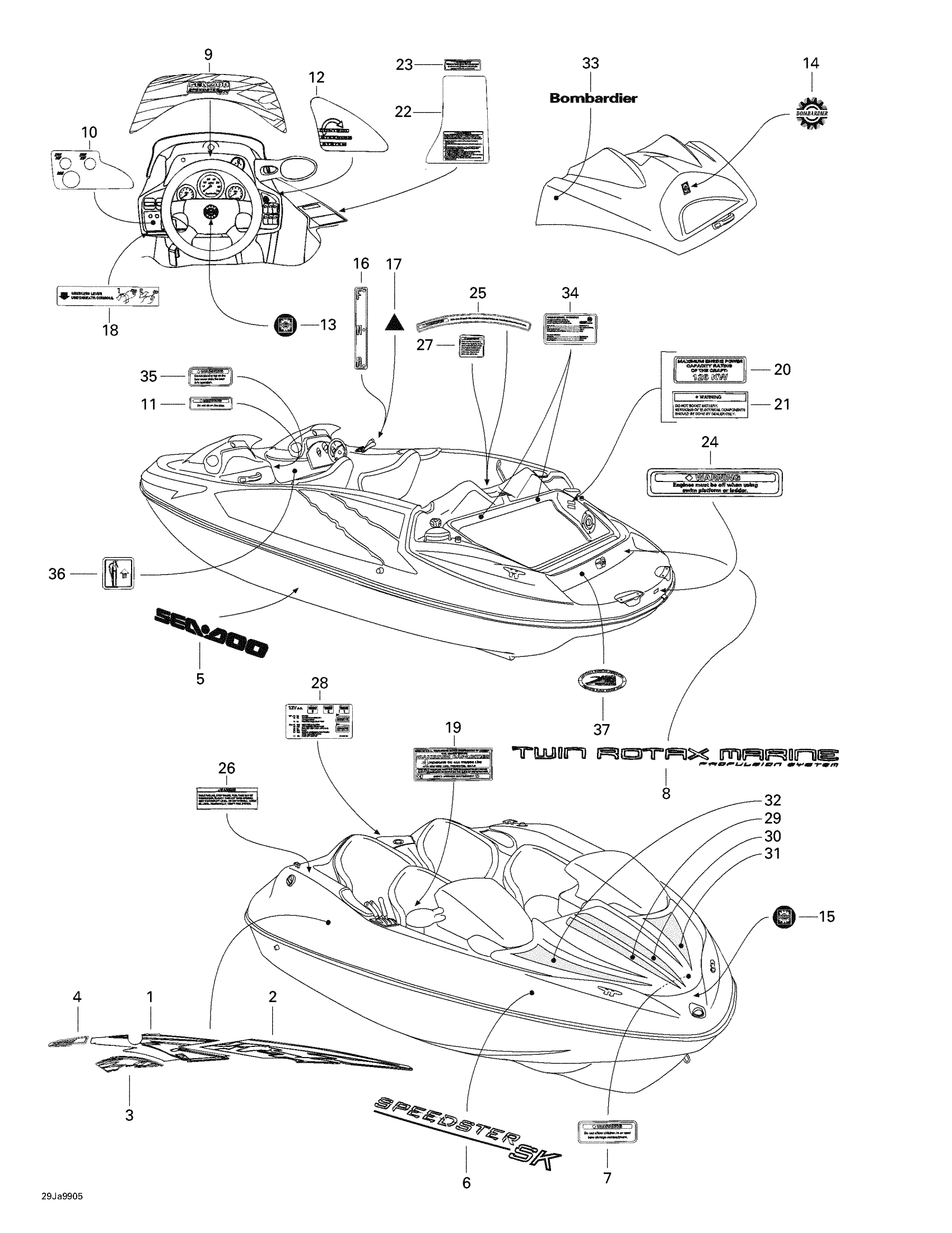 Sea-doo Speedster SK, 5677/5681, 1999 Decals Diagram