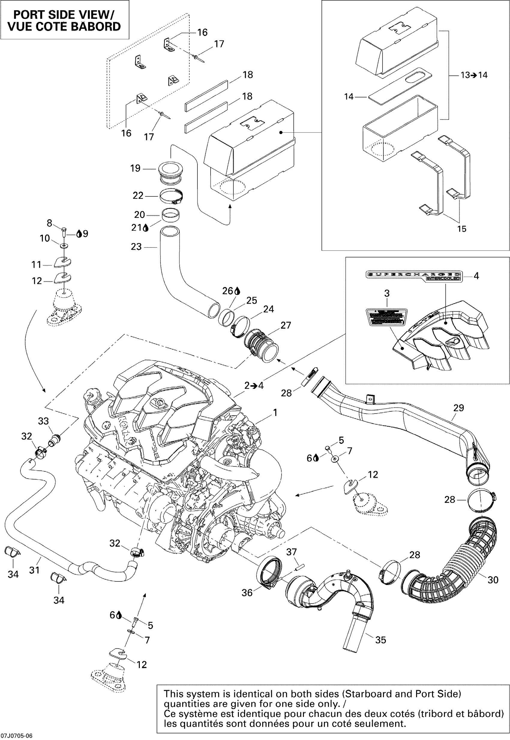Sea-doo Speedster WAKE 215IC, 2007 01- Engine And Air Intake Silencer Diagram