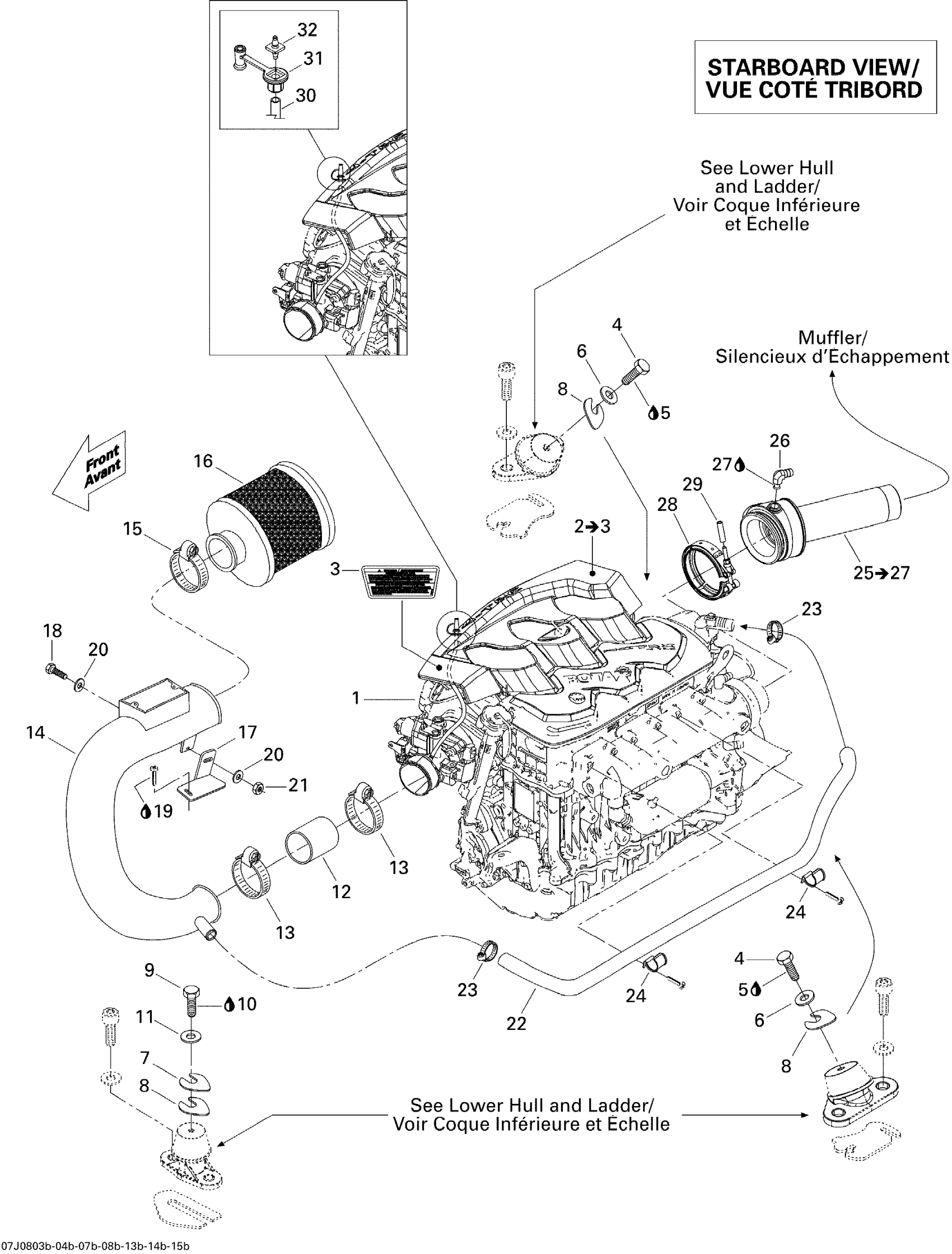 Sea-doo Speedster WAKE 310, 2008 01- Engine And Air Intake Silencer Edition 2 Diagram