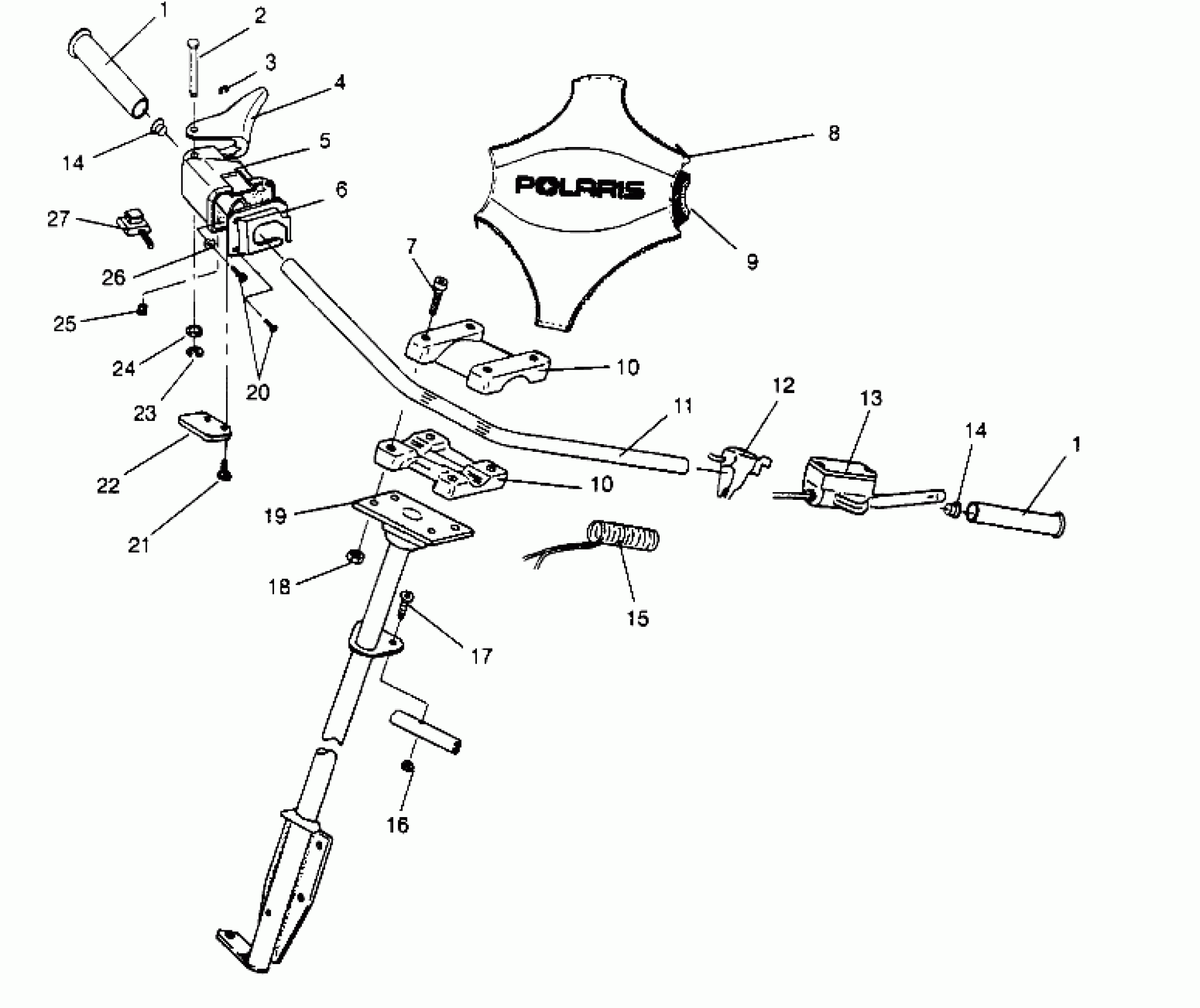 Polaris SPORT - 0960443 STEERING - HANDLEBAR SPORT 0960443, SPORT TOURING 0960243 and EUROPEAN SPOR (4932223222B006) Diagram