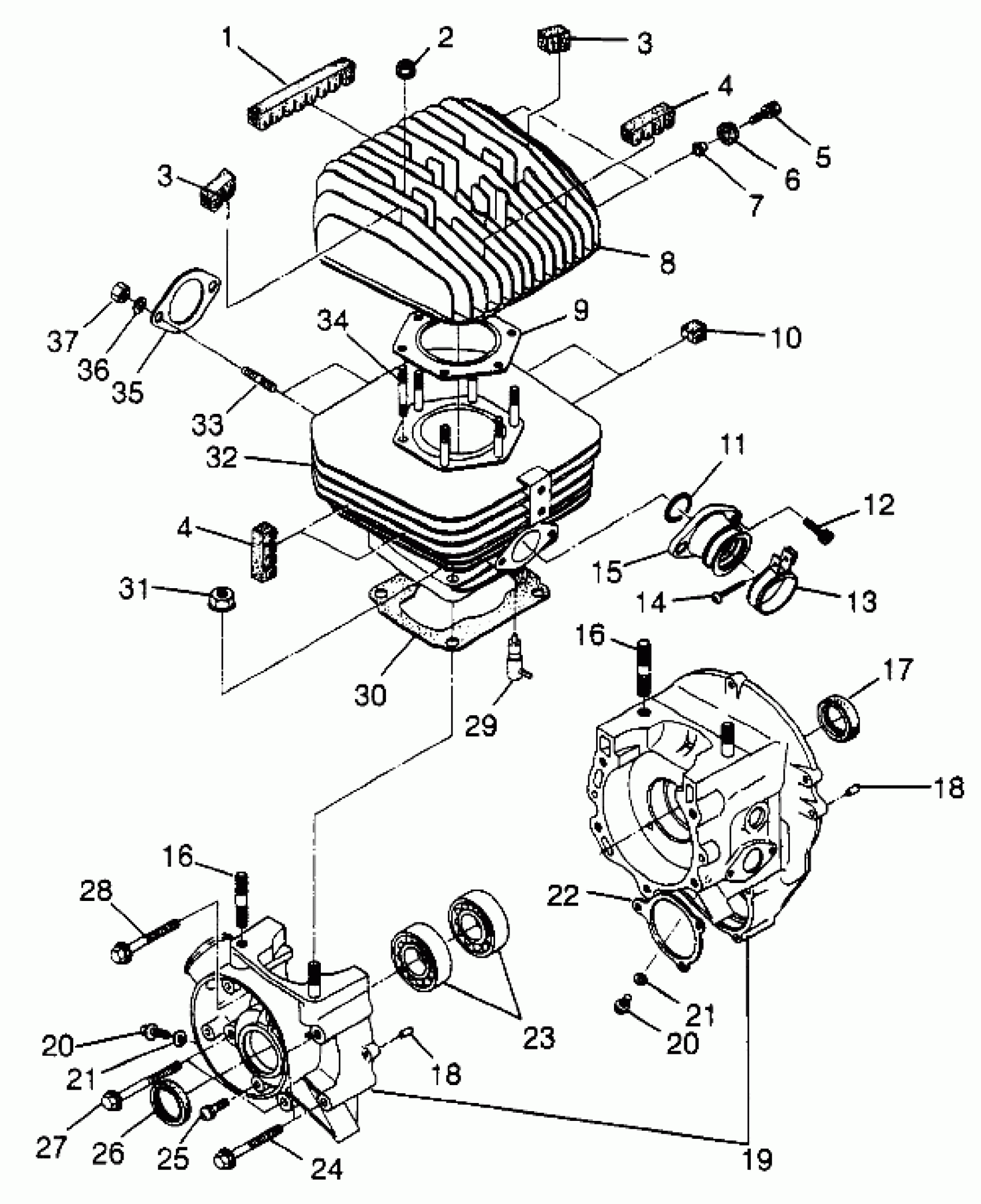 Polaris SPORT 400L - W97BA38C CRANKCASE and CYLINDER (BLAZER) Trail Blazer W97BA25C (4940124012C013) Diagram