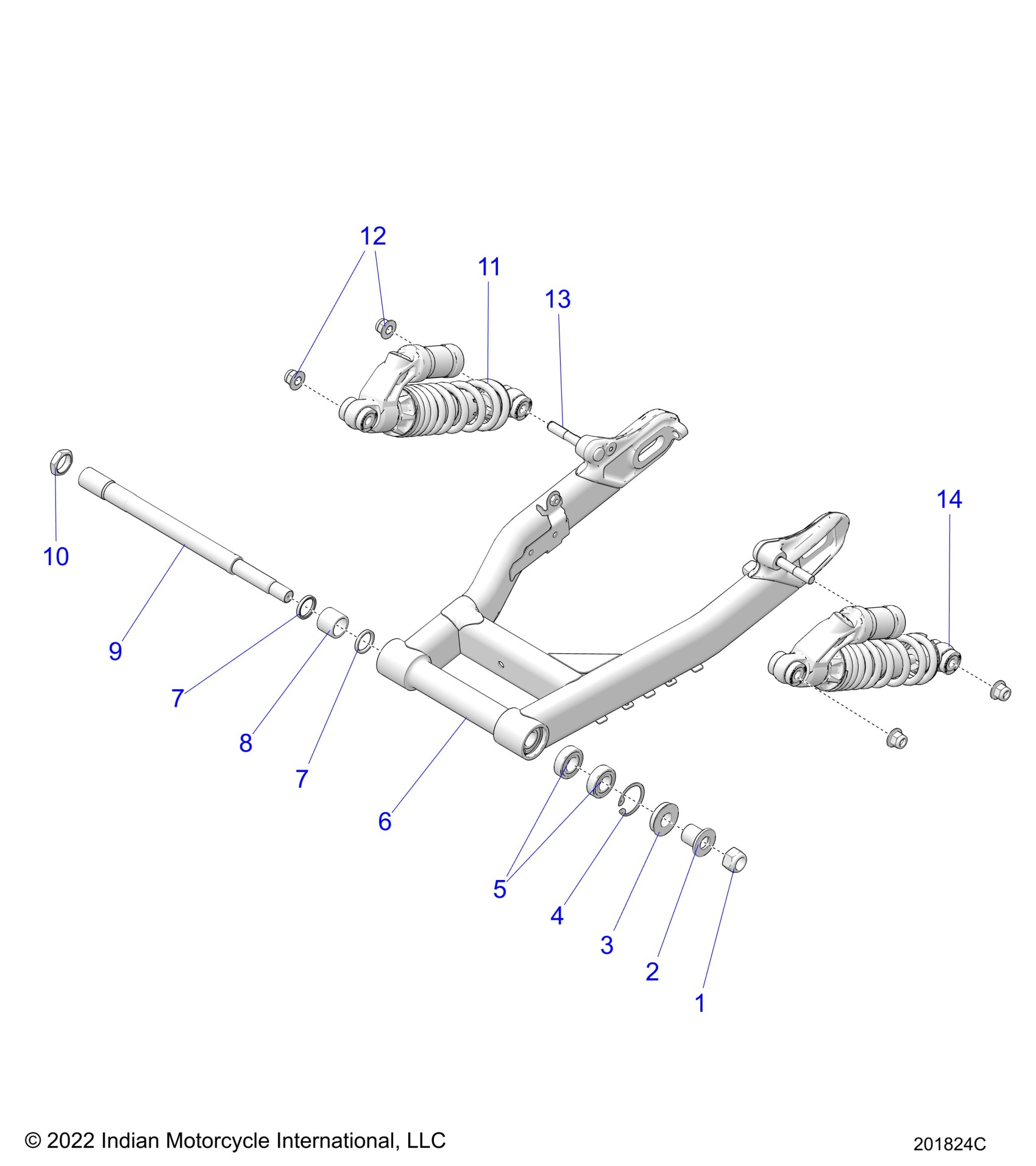 SUSPENSION, REAR ASM., SWING ARM AND SHOCKS - N24DSDBH/DSGBH ALL OPTIONS (201824C)