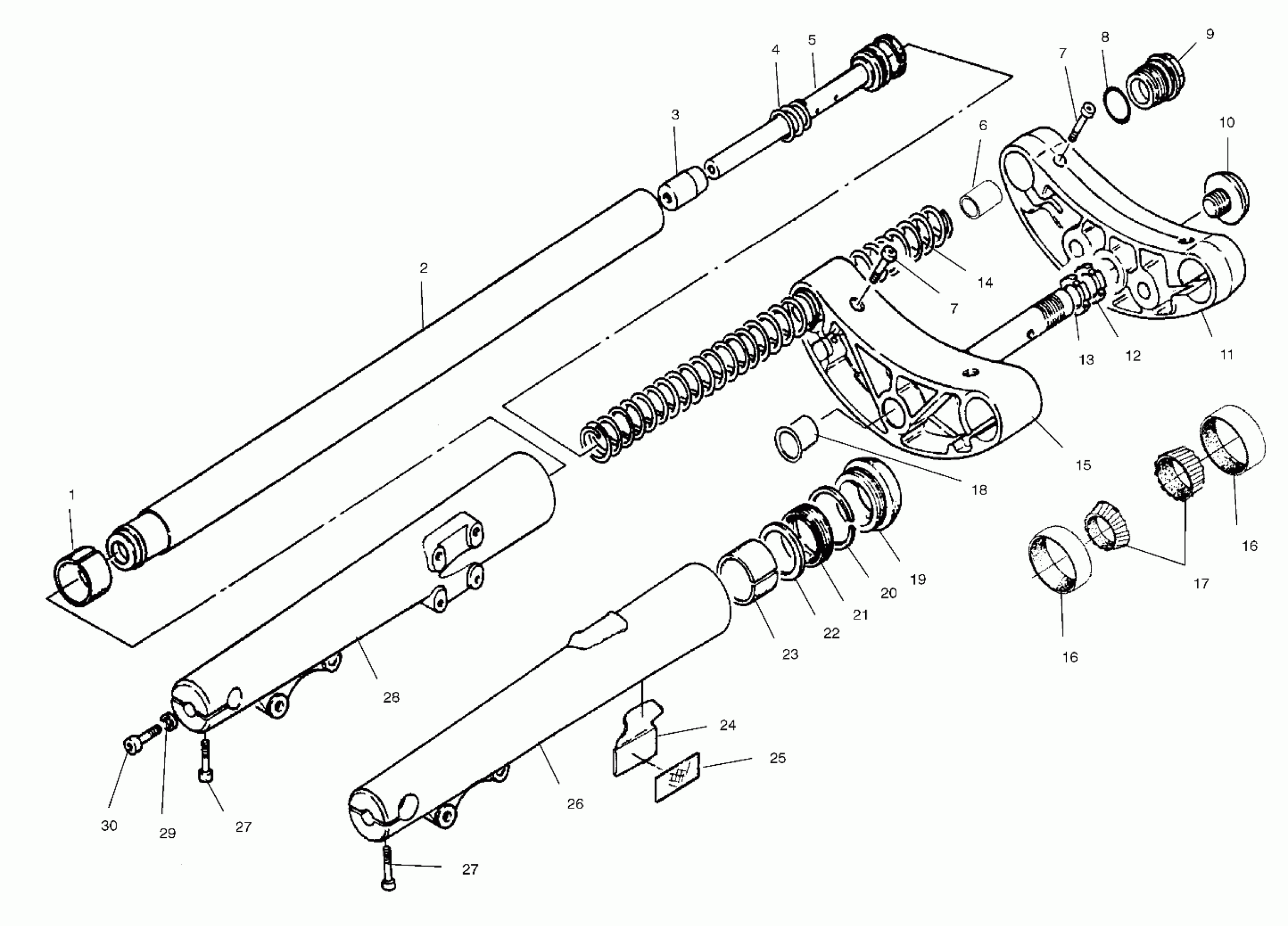ASM-FORK LEG,50MM,CONN,LH,BLK (Incl. 1-6,8,9,14,19-23,26,27,29,30)