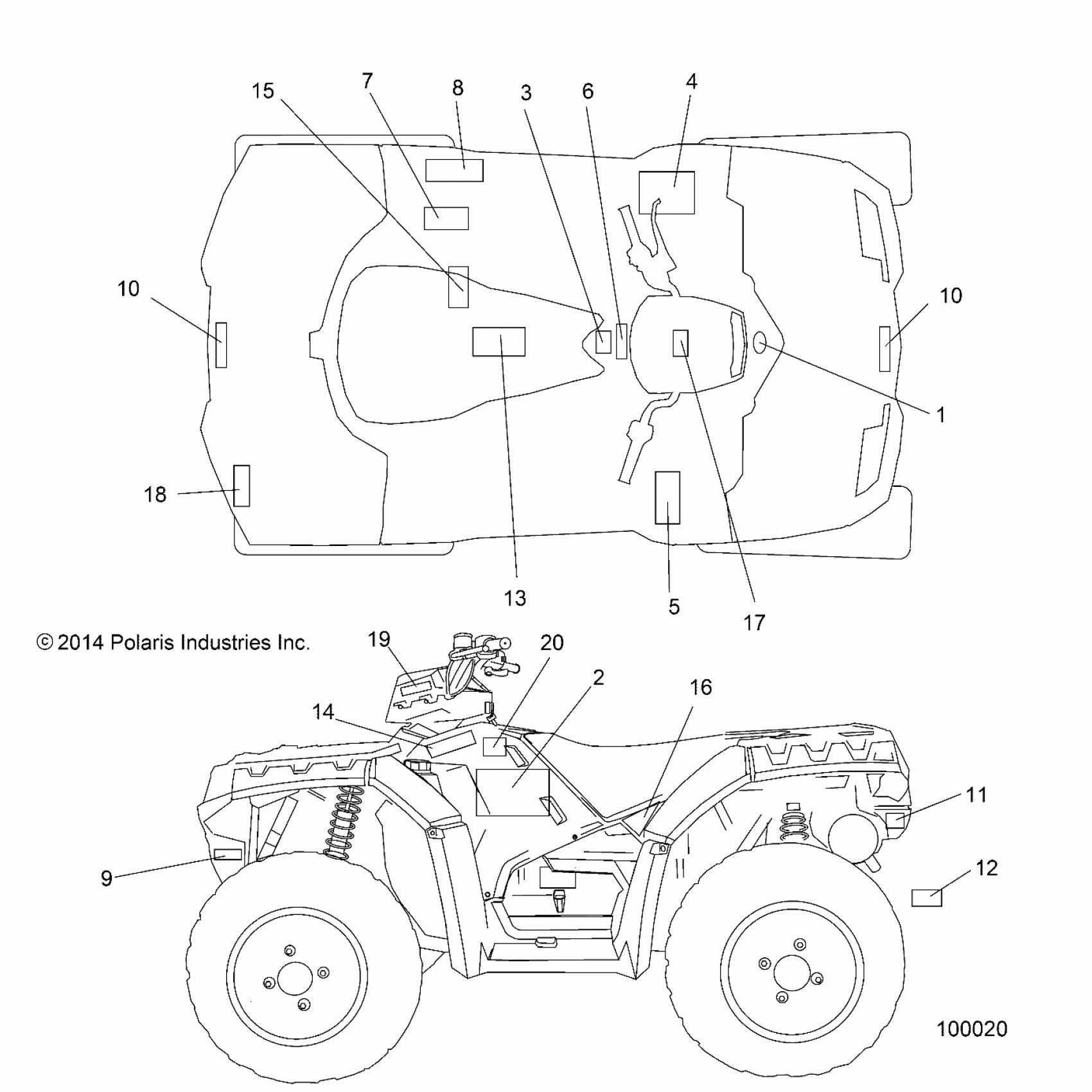 Polaris SPORTSMAN 1000 XP - A15SXE95AC/AK/AW/L95AM BODY, DECALS - A15SXE95AC/AK/AW/L95AM (100020) Diagram