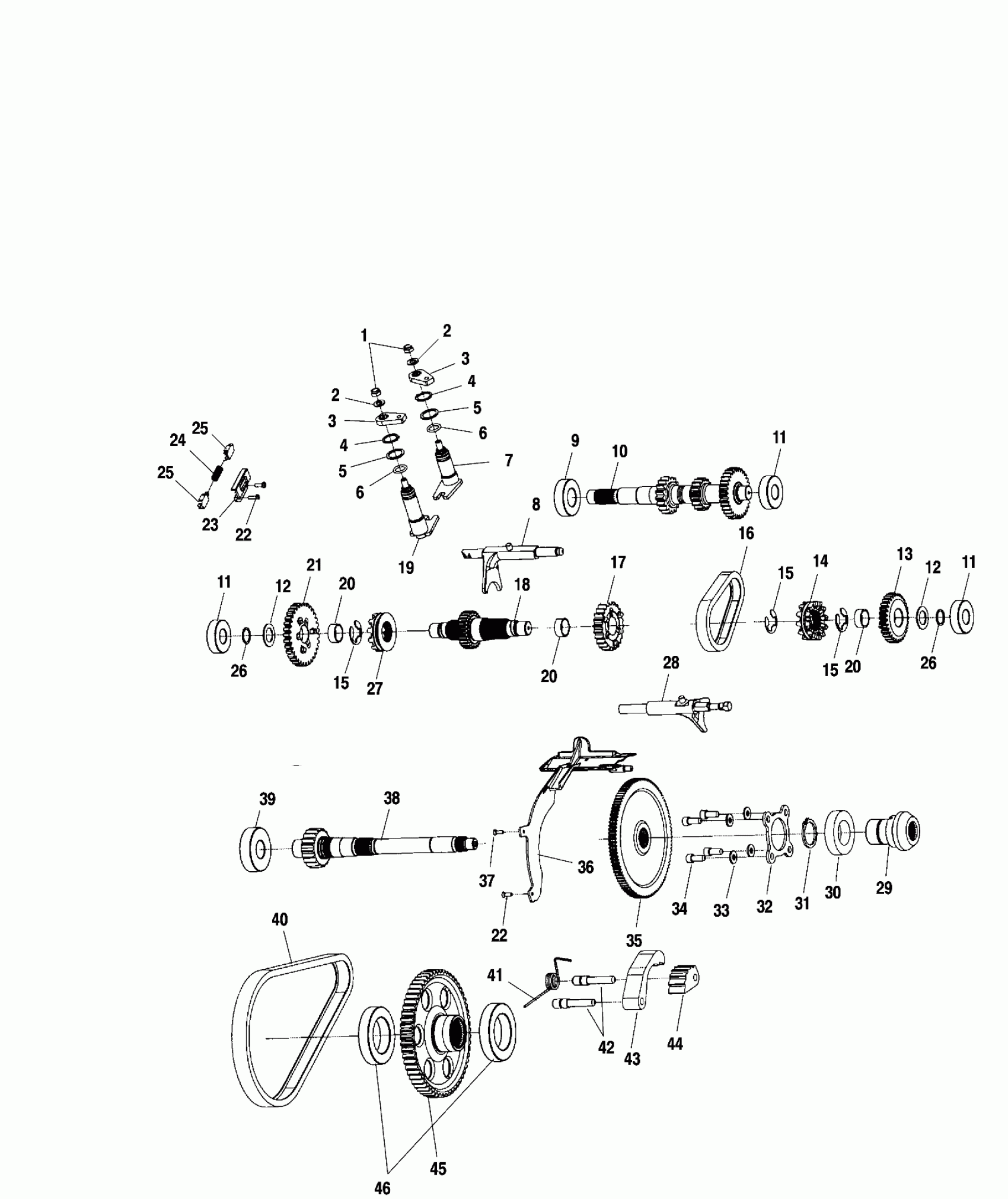 GEARCASE,ASM,SHAFT,PRD,500 (Incl. 1-46 and all except Ref. 6 on Gearcase/Cases and Snorkel Pg. C12)