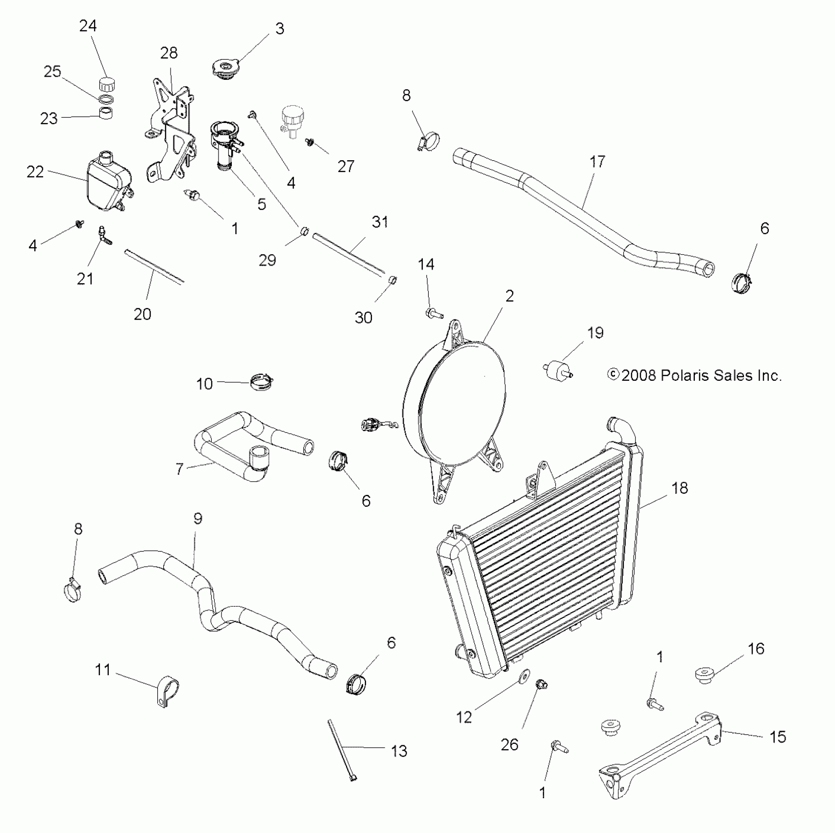 Polaris SPORTSMAN 400 HO 4X4 - A10LH46AX/AZ ENGINE, COOLING SYSTEM - A10LH46AX/AZ (49ATVCOOL09SP400) Diagram
