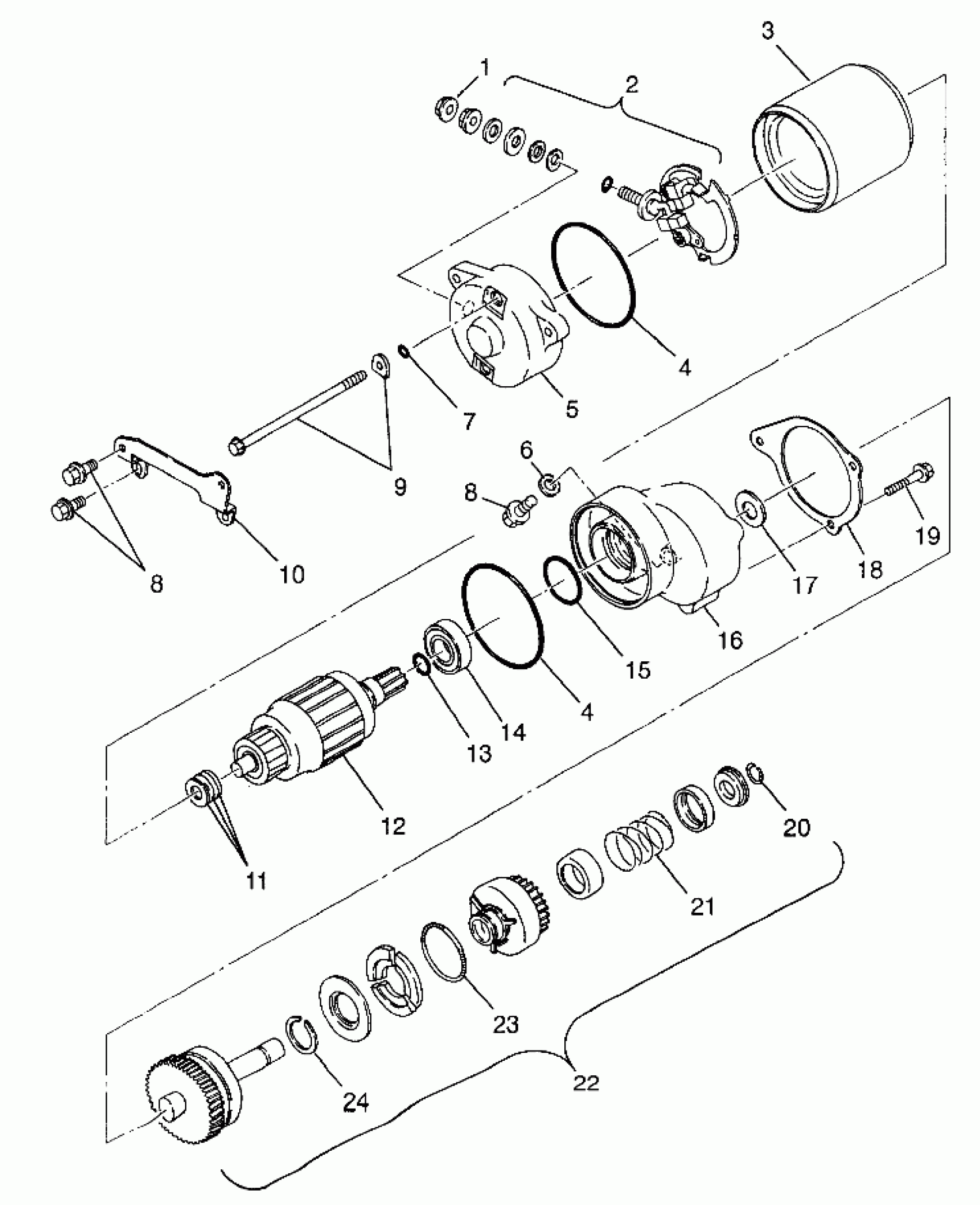 MOTOR ASM,STARTER Substituted by 3087043 (Incl. 1-5, 7, 9, 11-17, 20-24)