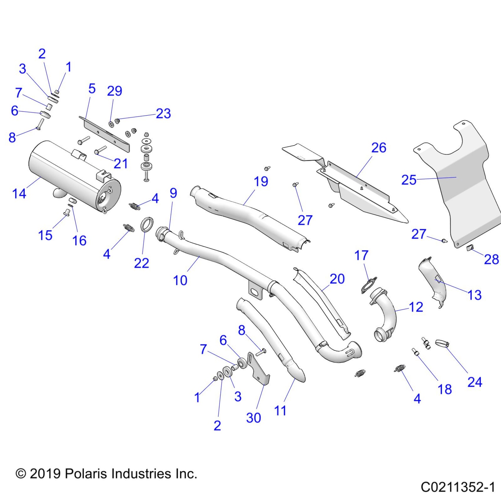 Polaris SPORTSMAN 450 HO (R04) - A20SEA50A1/A5/CA1/CA5 ENGINE, EXHAUST - A20SEA50A1/A5/CA1/CA5 (C0211352-1) Diagram