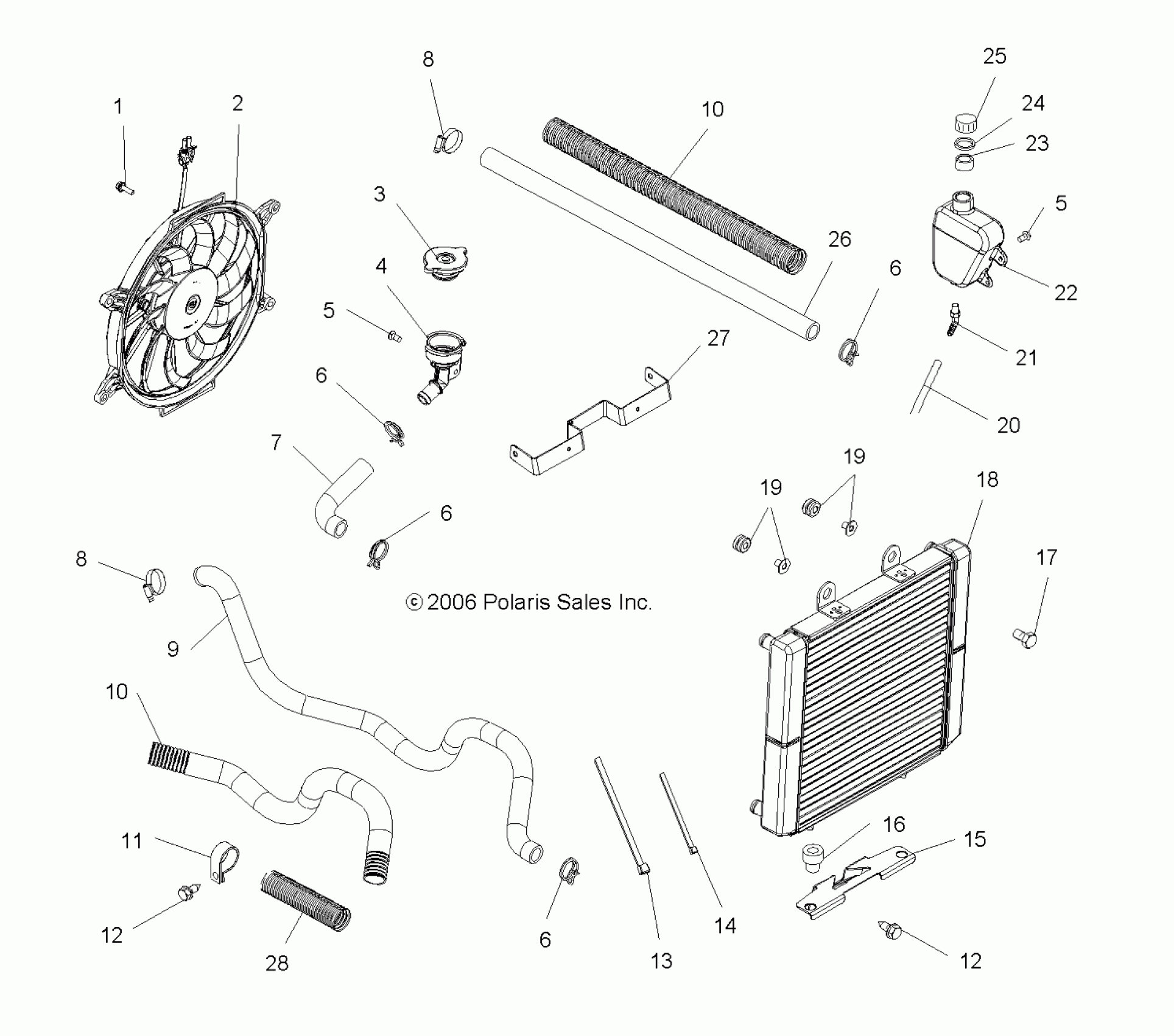 Polaris SPORTSMAN 500 EFI - A07MH50AB/AL/AQ/AX/AY/AZ/MN50AF/AN/AT/AY COOLING SYSTEM - A07MH50AB/AL/AQ/AX/AY/AZ/MN50AF/AN/AT/AY (49ATVCOOL500EFI) Diagram