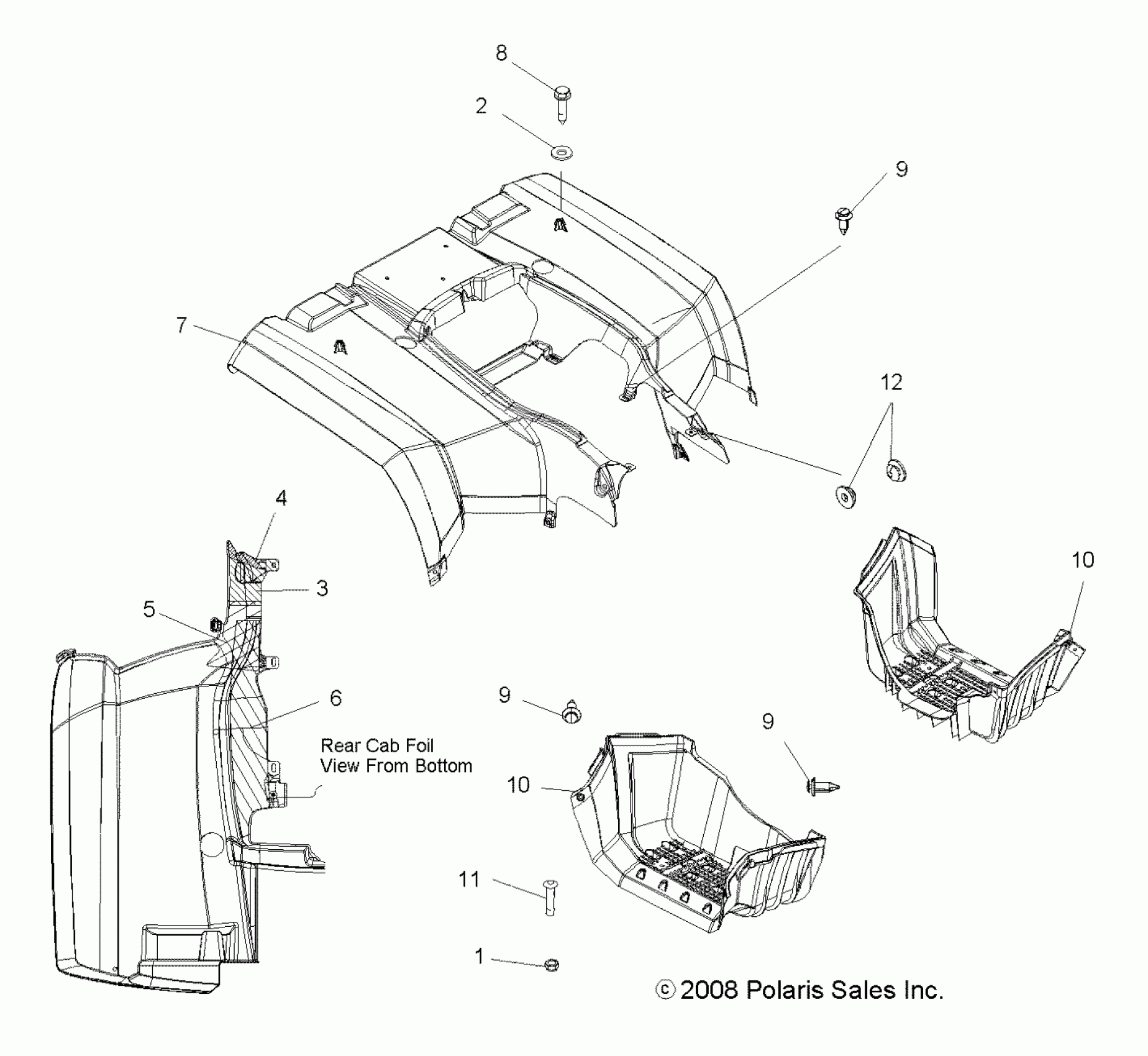 Polaris SPORTSMAN 500 EFI TRACTOR - A10MN50ET BODY, REAR CAB and FOOTWELLS - A10MN50ET (49ATVCABRR09SP500TR) Diagram