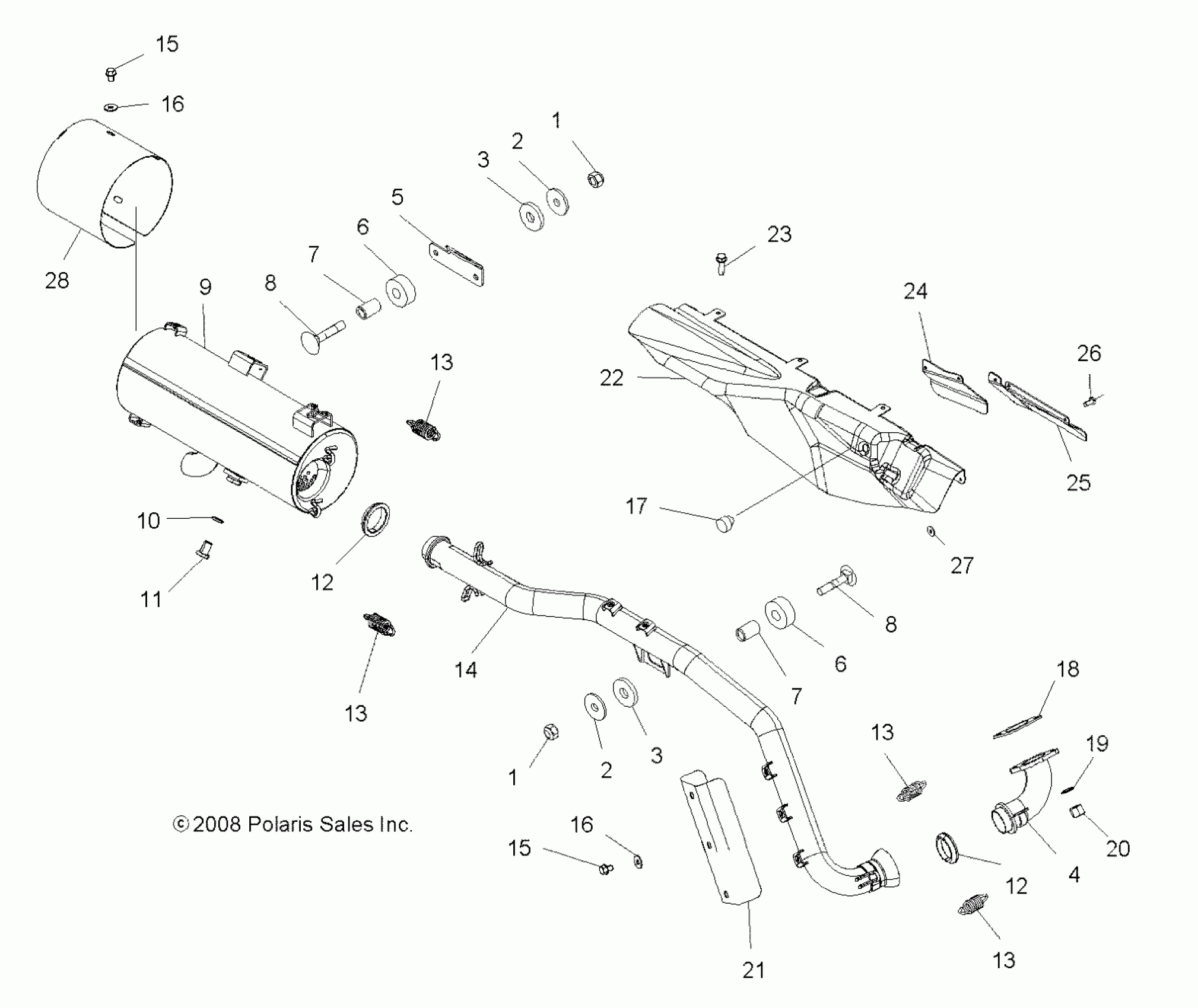Polaris SPORTSMAN 500 EFI TRACTOR - A10MN50ET ENGINE, EXHAUST - A10MN50ET (49ATVEXHAUST09SP500TR) Diagram