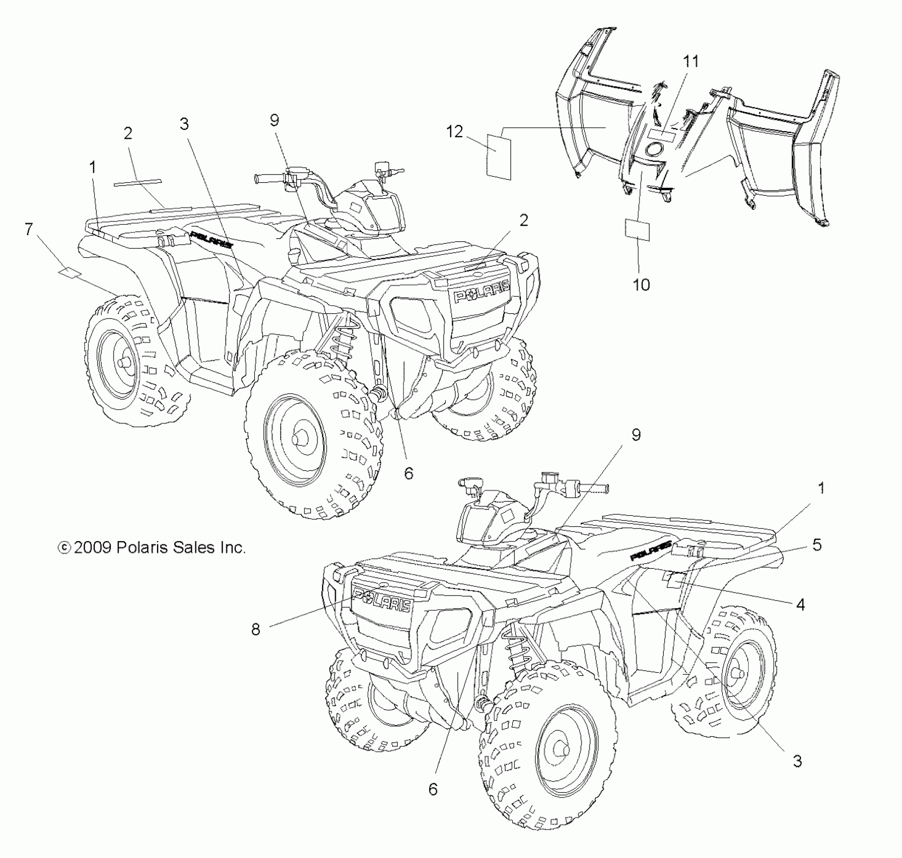 Polaris SPORTSMAN 500 HO - A09MH50AS/AX/AZ BODY, DECALS - A09MH50AS/AX/AZ (49ATVDECAL09SP500HO) Diagram