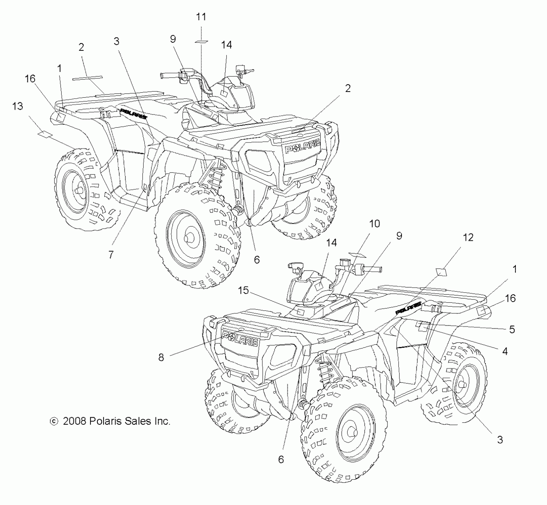 Polaris SPORTSMAN 500 HO EFI - A08MN50AF/AN/AQ/AR/AS/AT/AW/AX BODY, DECALS - A08MN50AF/AN/AQ/AR/AS/AT/AW/AX (49ATVDECAL08EFI) Diagram