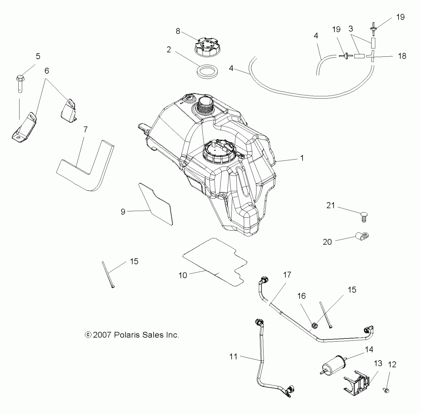 BODY, FUEL TANK ASM. (Built 8/21/07 and After) - A08MN50AF/AN/AQ/AR/AS/AT/AW/AX (49ATVFUEL08SP500EFIA)