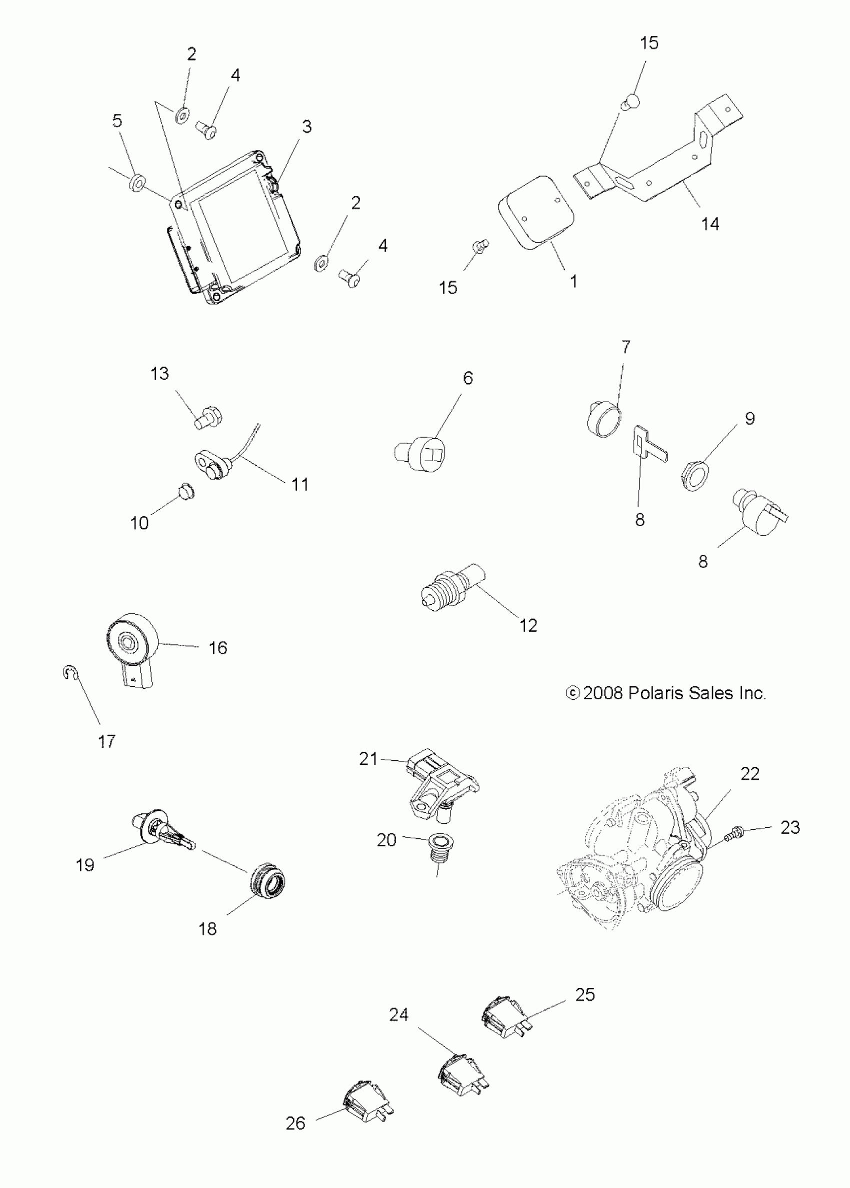 Polaris SPORTSMAN 500 HO EFI - A08MN50AF/AN/AQ/AR/AS/AT/AW/AX ELECTRICAL, SWITCHES and SENSORS and ECM - A08MN50AF/AN/AQ/AR/AS/AT/AW/AX (49ATVELECT08EFI) Diagram
