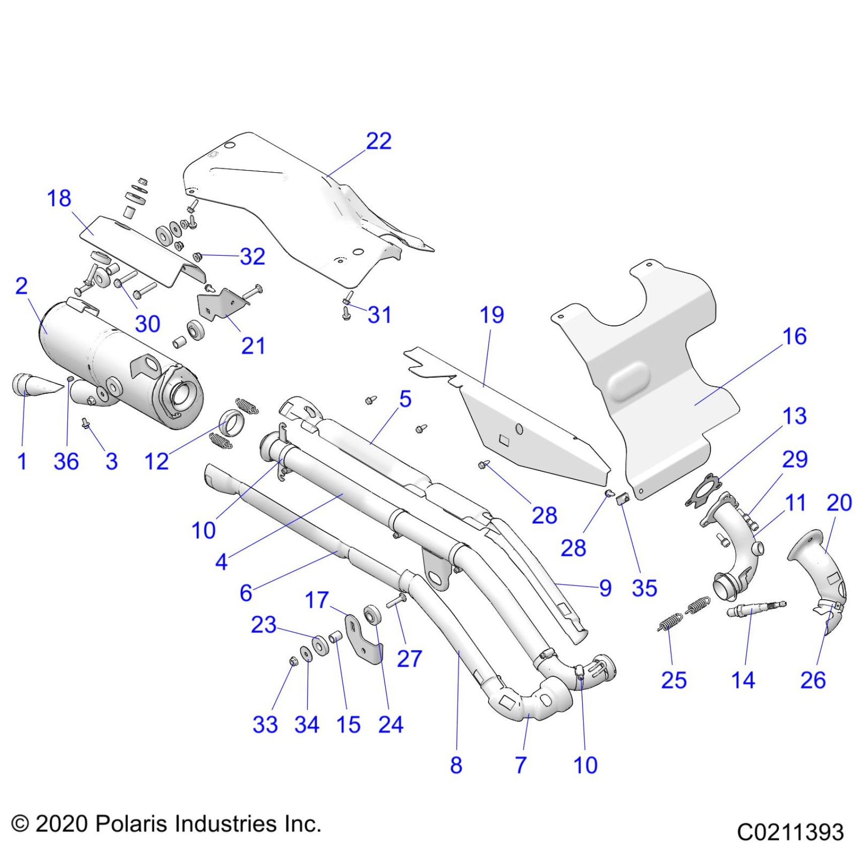 Polaris SPORTSMAN 570 TRAIL PACKAGE (R02) - A22SEZ57AM/AN/BM/BN ENGINE, EXHAUST - A22SEZ57BM/BN (C0211393) Diagram