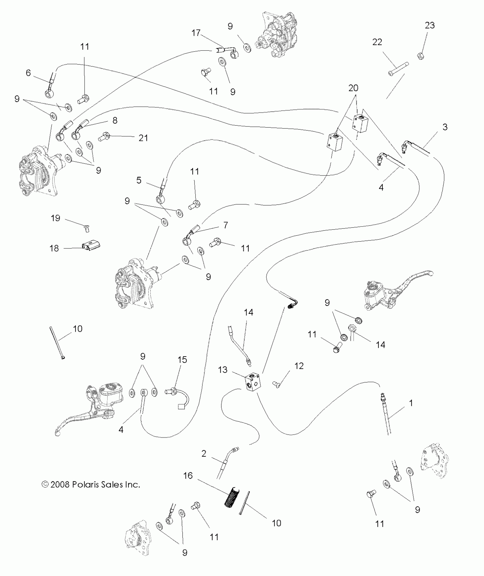 Polaris SPORTSMAN 800 EFI 6X6 - A13CF76AA BRAKES, BRAKE LINES - A13CF76AA (49ATVBRAKELINE096X6) Diagram