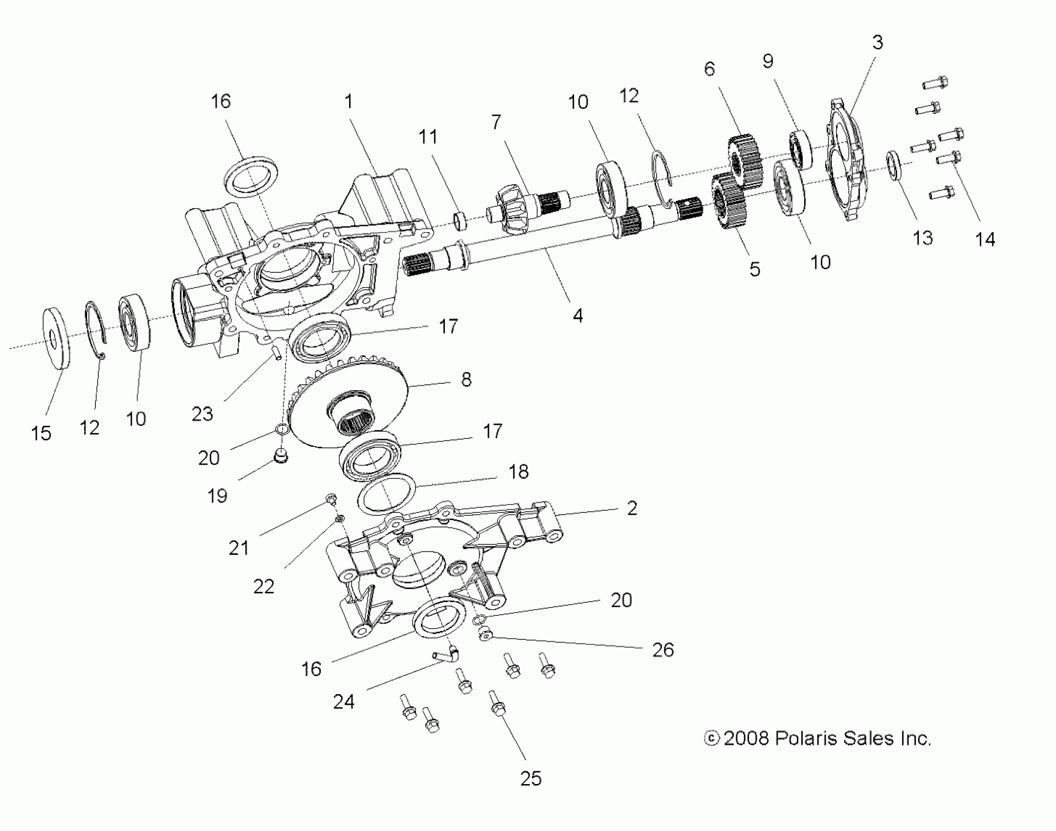Polaris SPORTSMAN 800 EFI 6X6 - A13CF76AA DRIVE TRAIN, MID GEARCASE INTERNALS - A13CF76AA (49ATVGEARMIDINTL096X6) Diagram