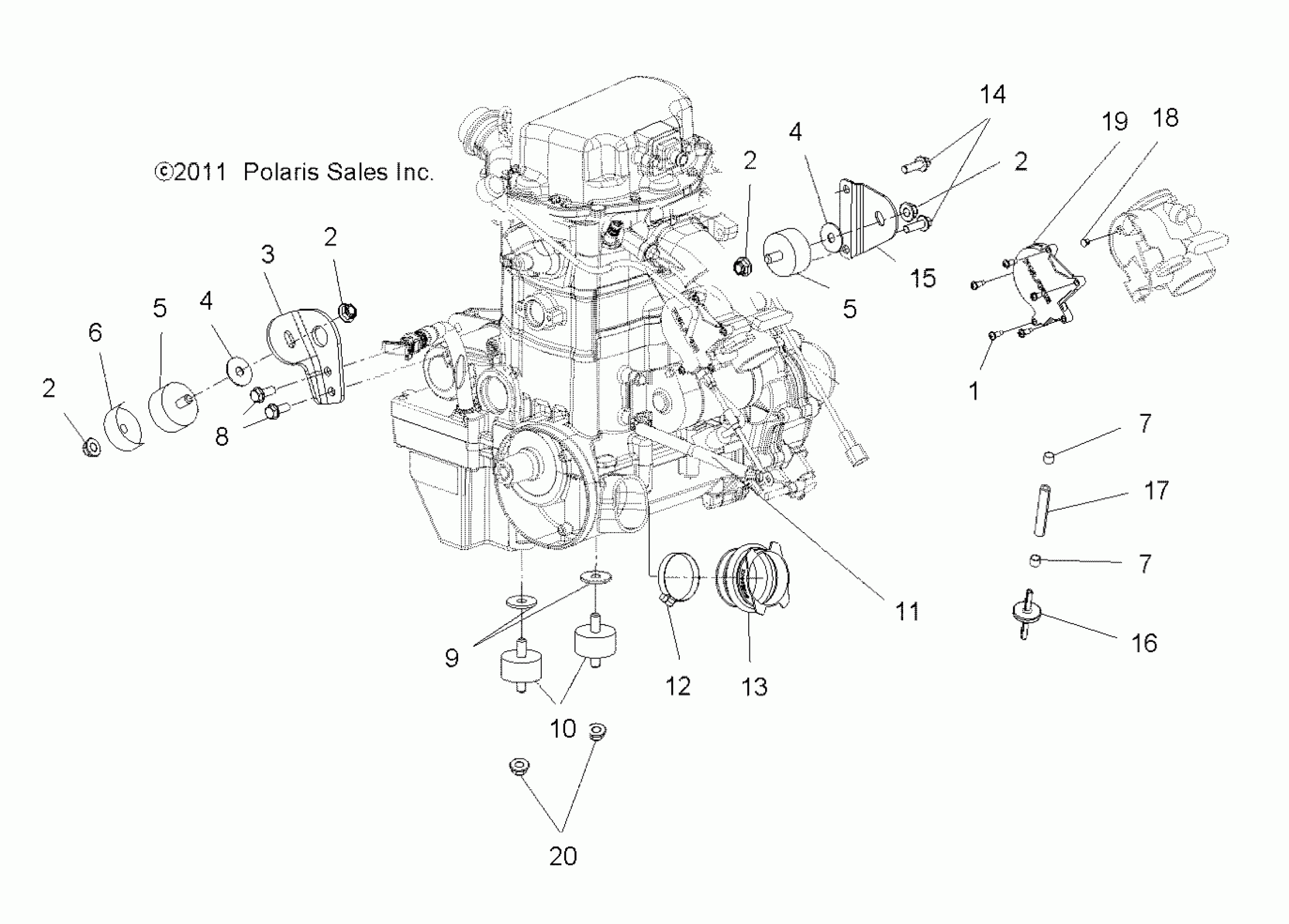 Polaris SPORTSMAN 800 EFI 6X6 - A13CF76AA ENGINE, MOUNTING - A13CF76AA (49ATVENGINEMTG136X6) Diagram