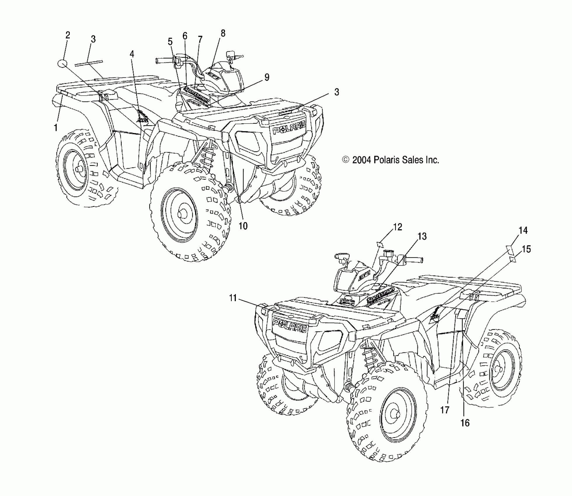 Polaris SPORTSMAN 800 EFI - A05MH76AC/AU/AW DECALS - A05MH76AU/AW (4977217721A11) Diagram