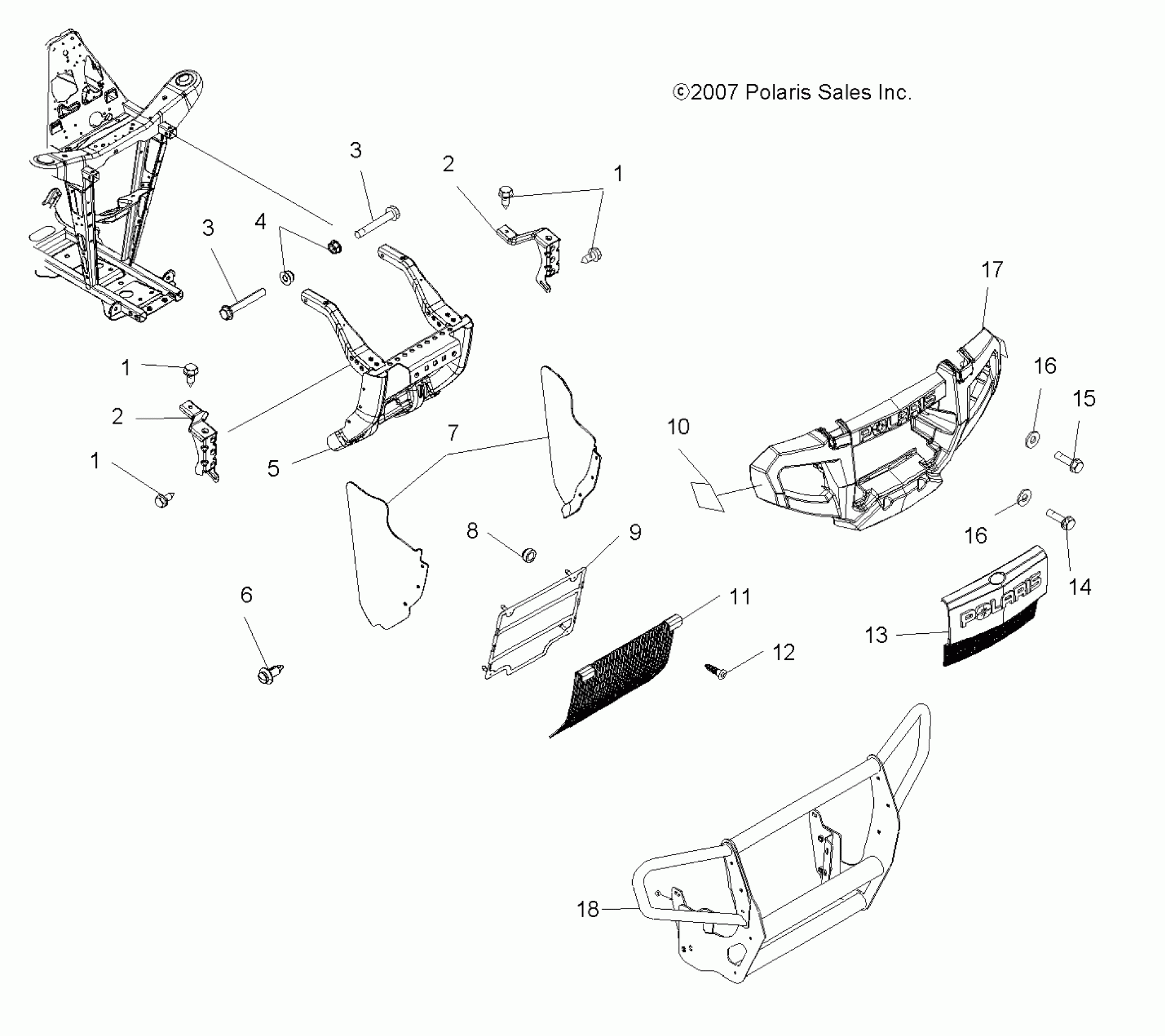 Polaris SPORTSMAN 800 EFI - A07MH76AL/AQ/AX/AY/AZ/A2/MN76AF/AT/AY BUMPER MOUNTING - A07MH76AL/AQ/AX/AY/AZ/A2/MN76AF/AT/AY (49ATVBUMPER800EFI) Diagram